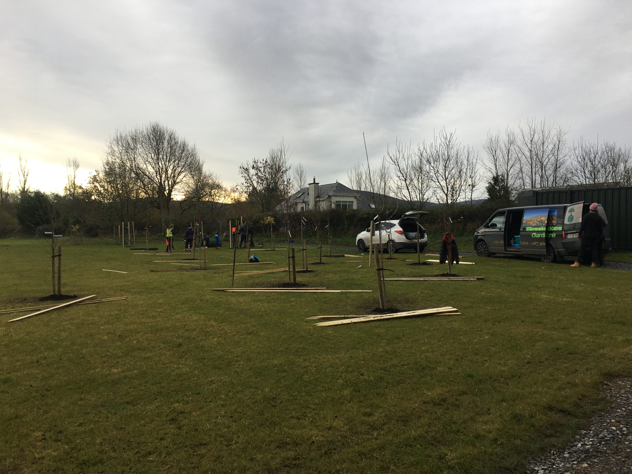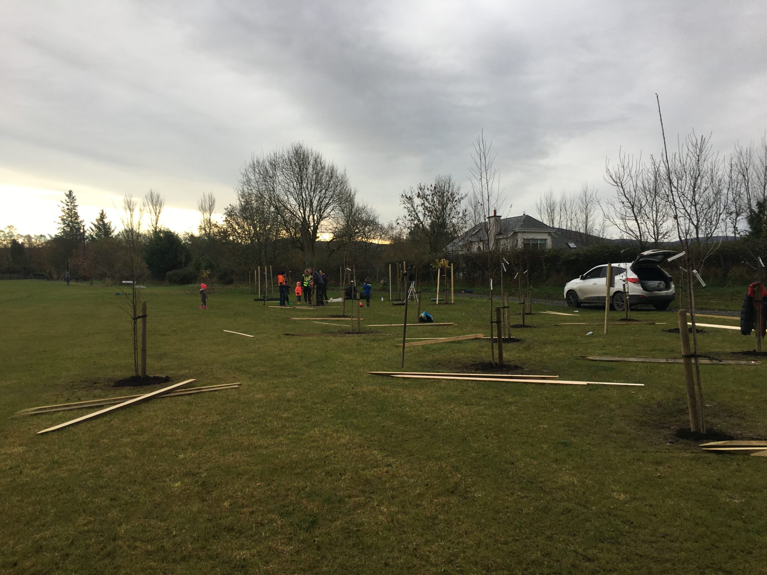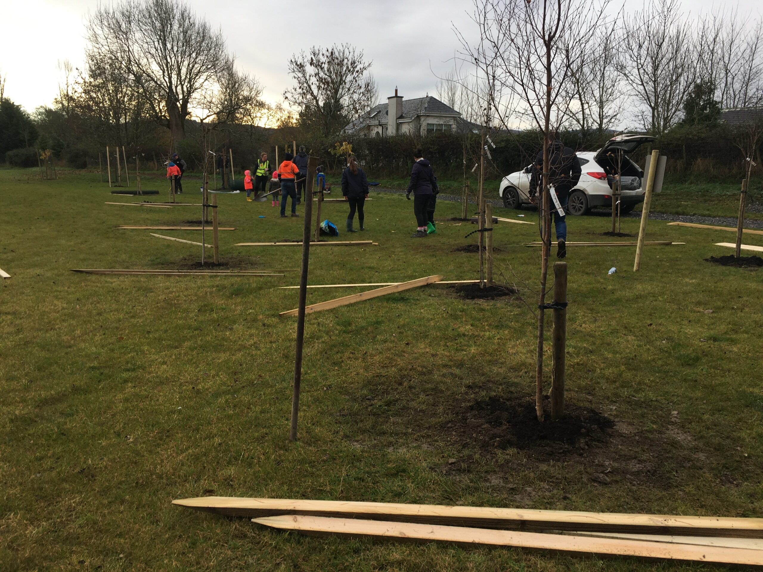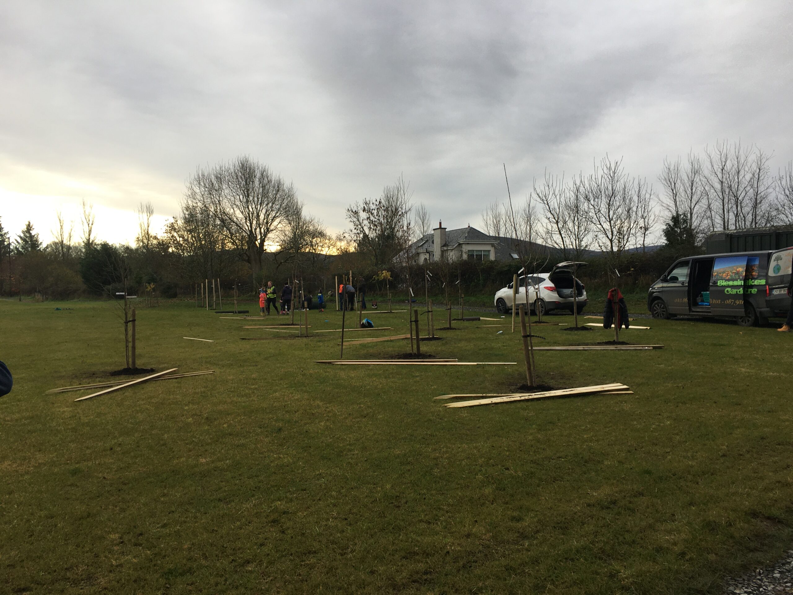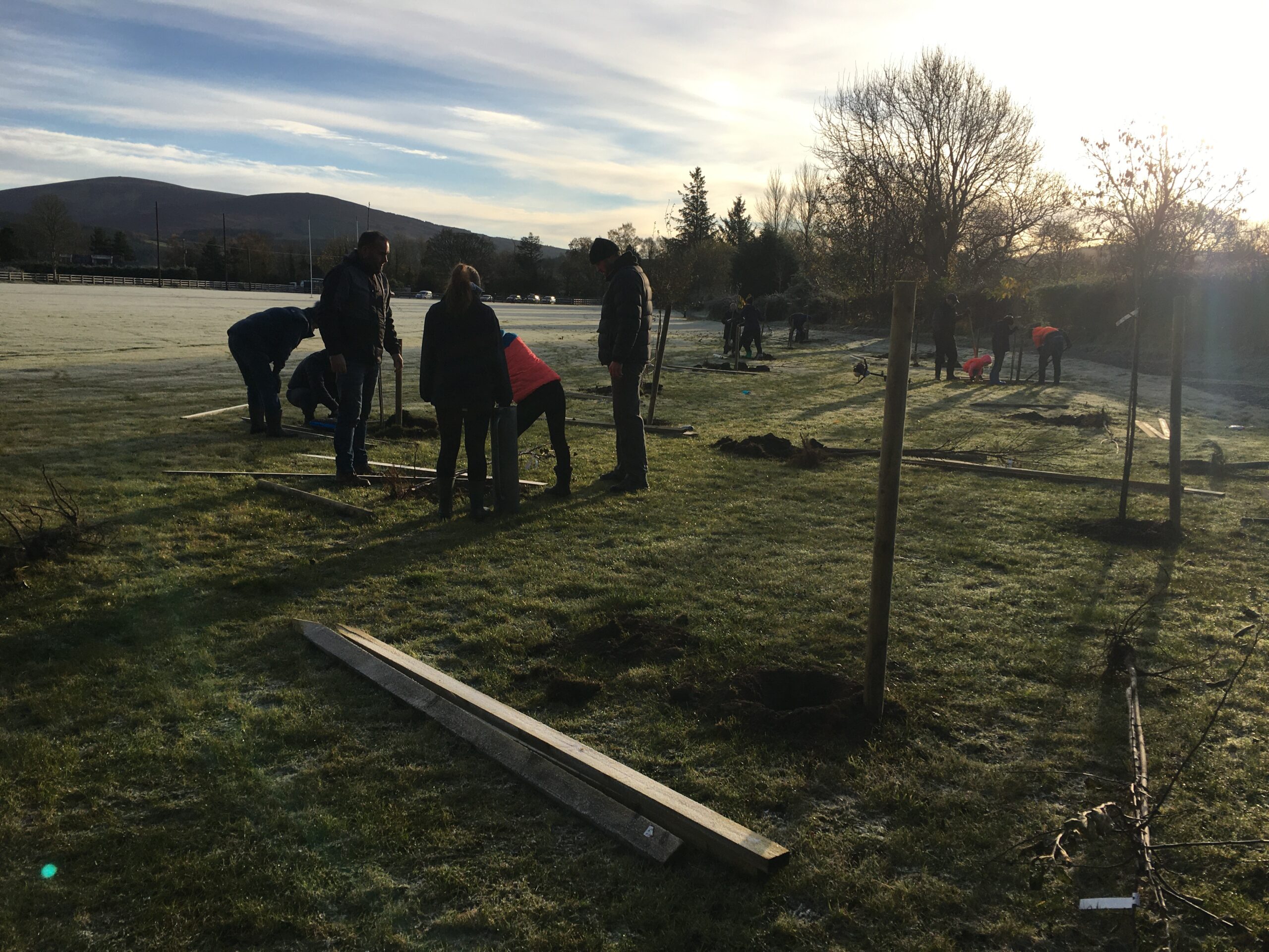 As you may be aware the Club received a 500 euro grant to plant trees from Wicklow County Council, which was great.  And so, we engaged Catriona Taylor at Blessington Lakes Garden Centre who acted not only as tree supplier but a consultant who also managed to bring along the crew from Bugs, Bees & (Native) Trees, thank you to Dr David Mulcahy.