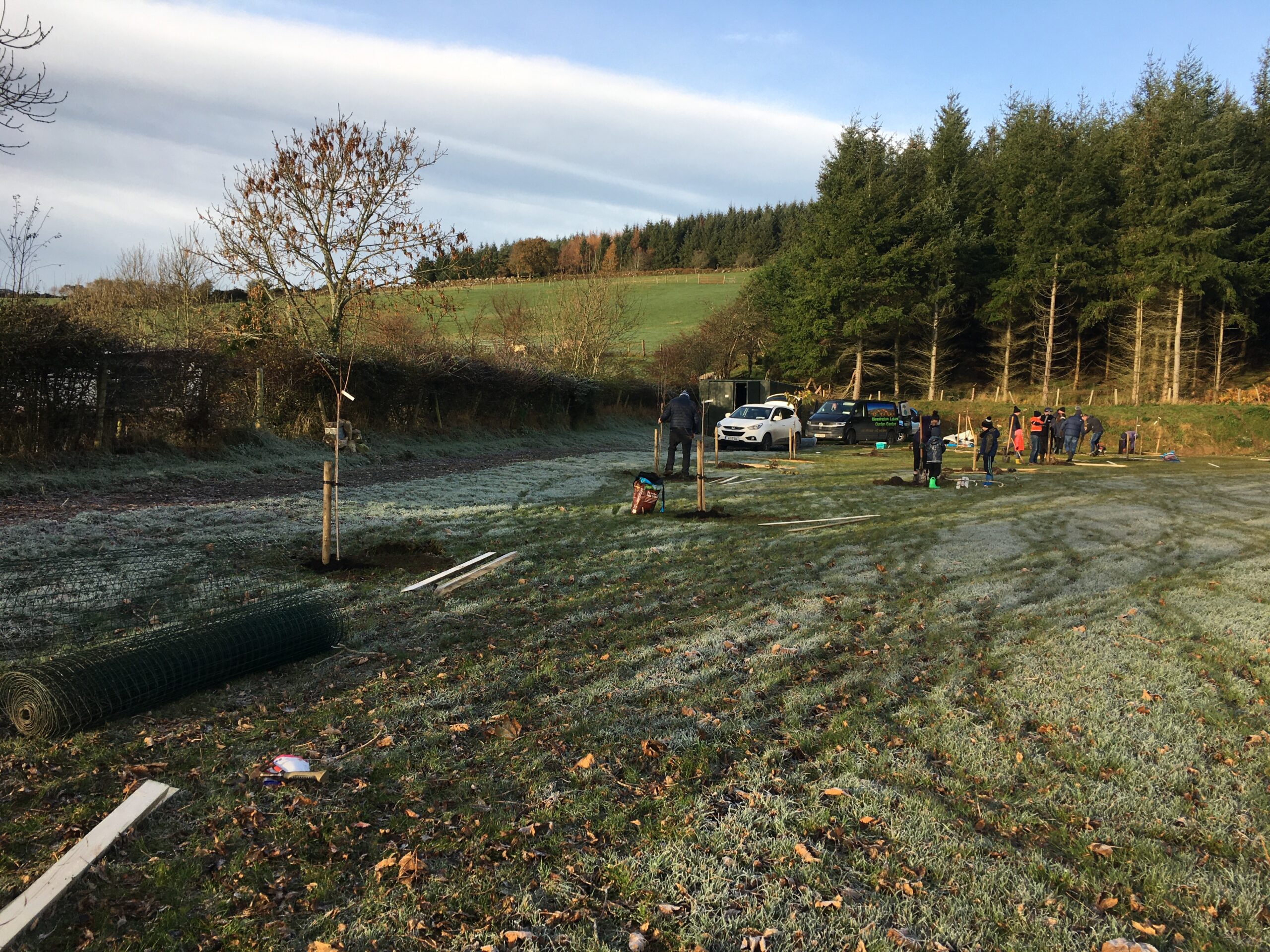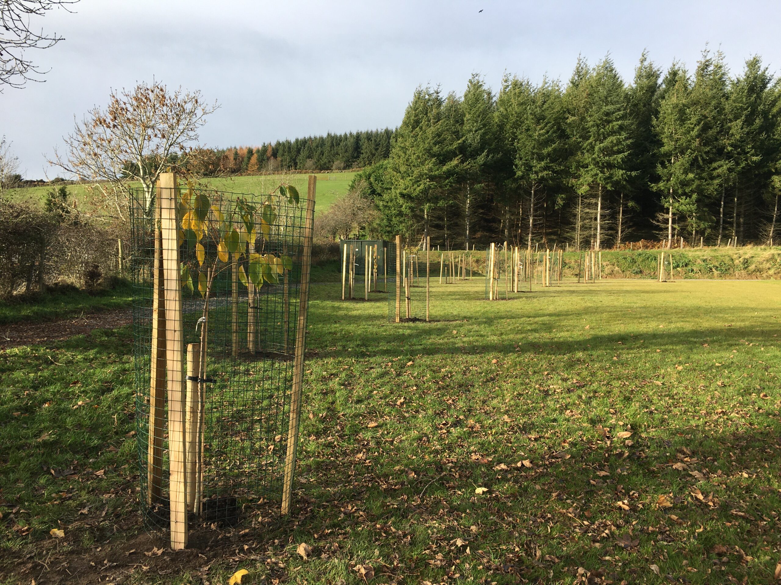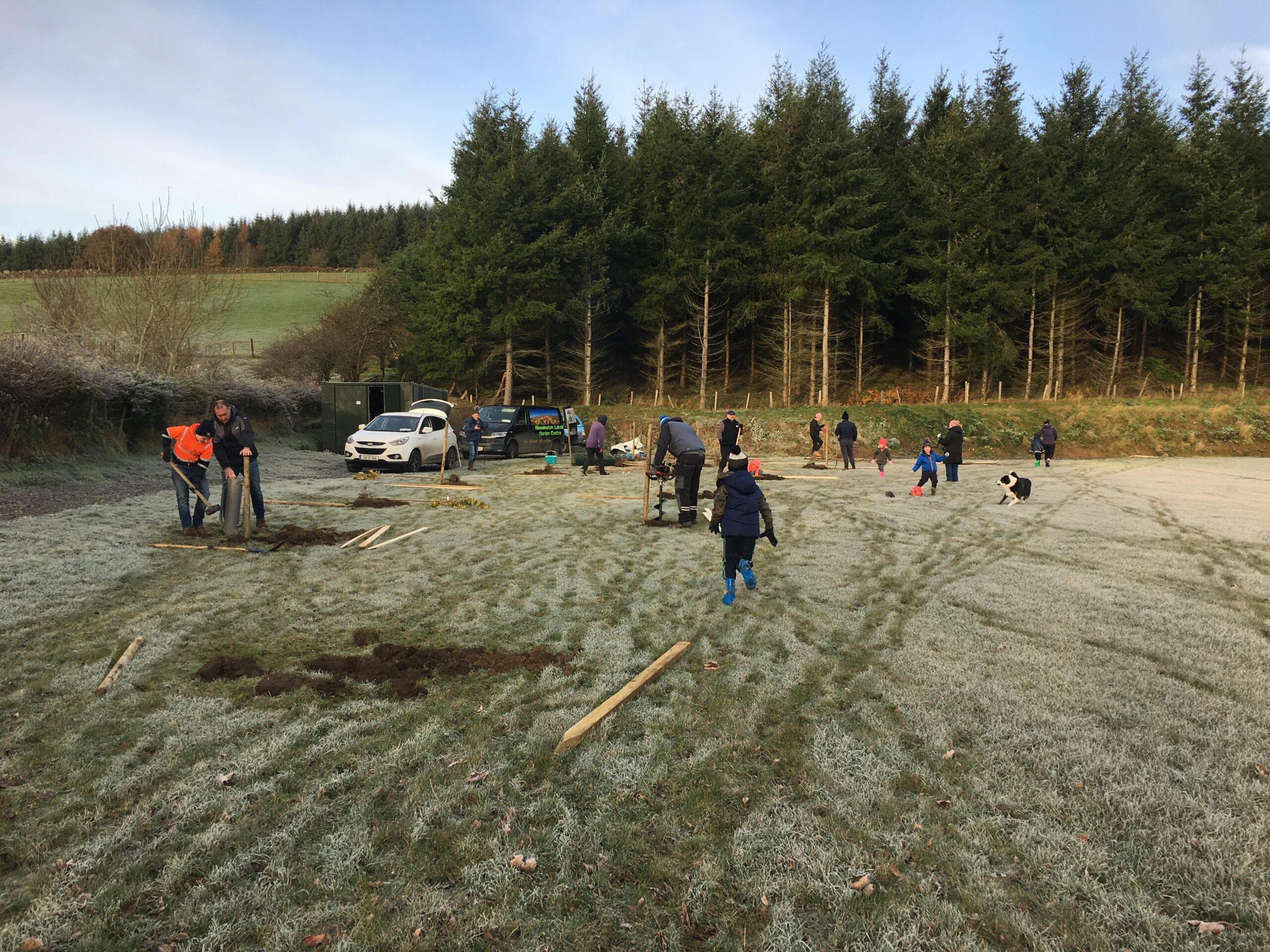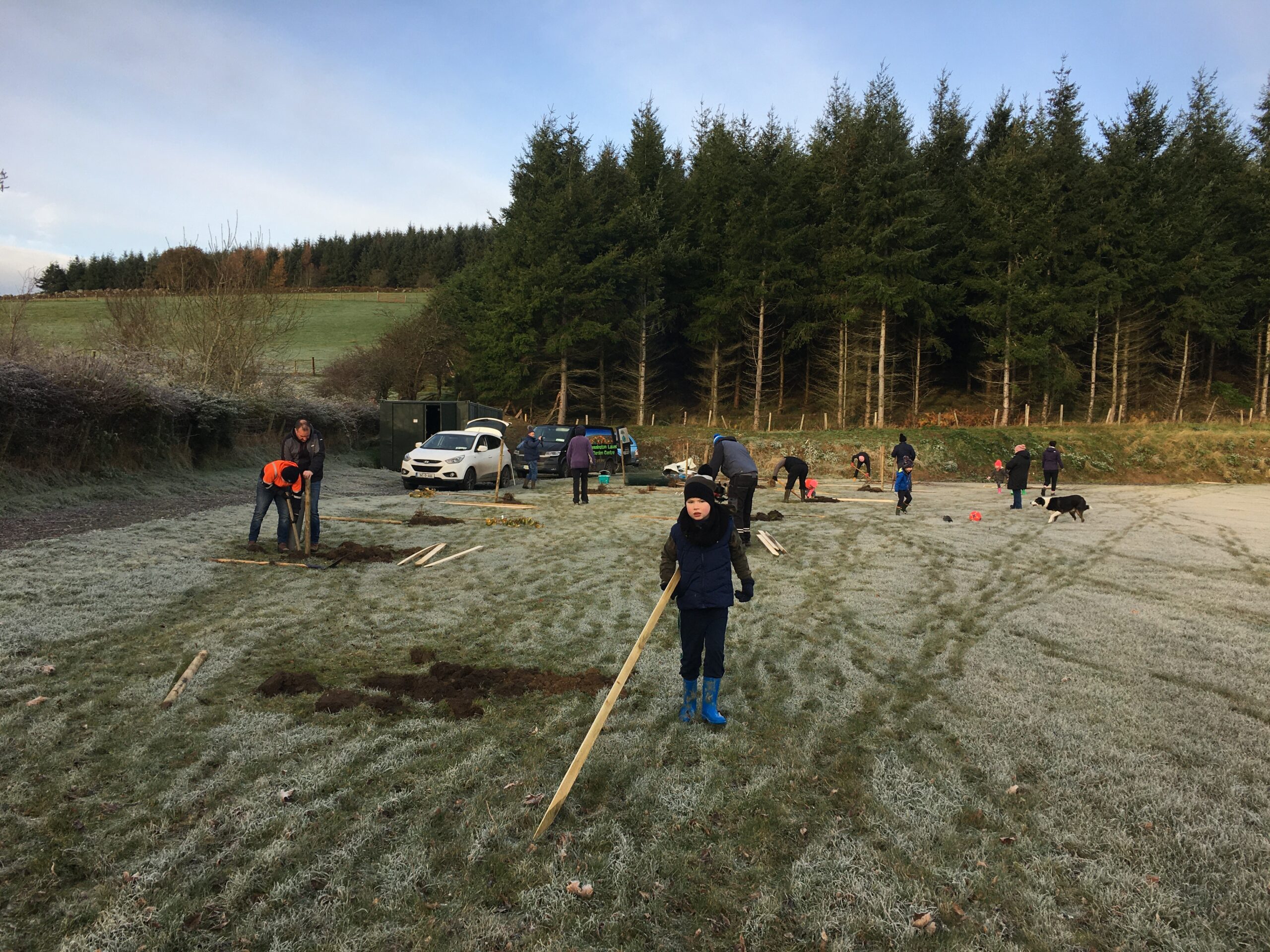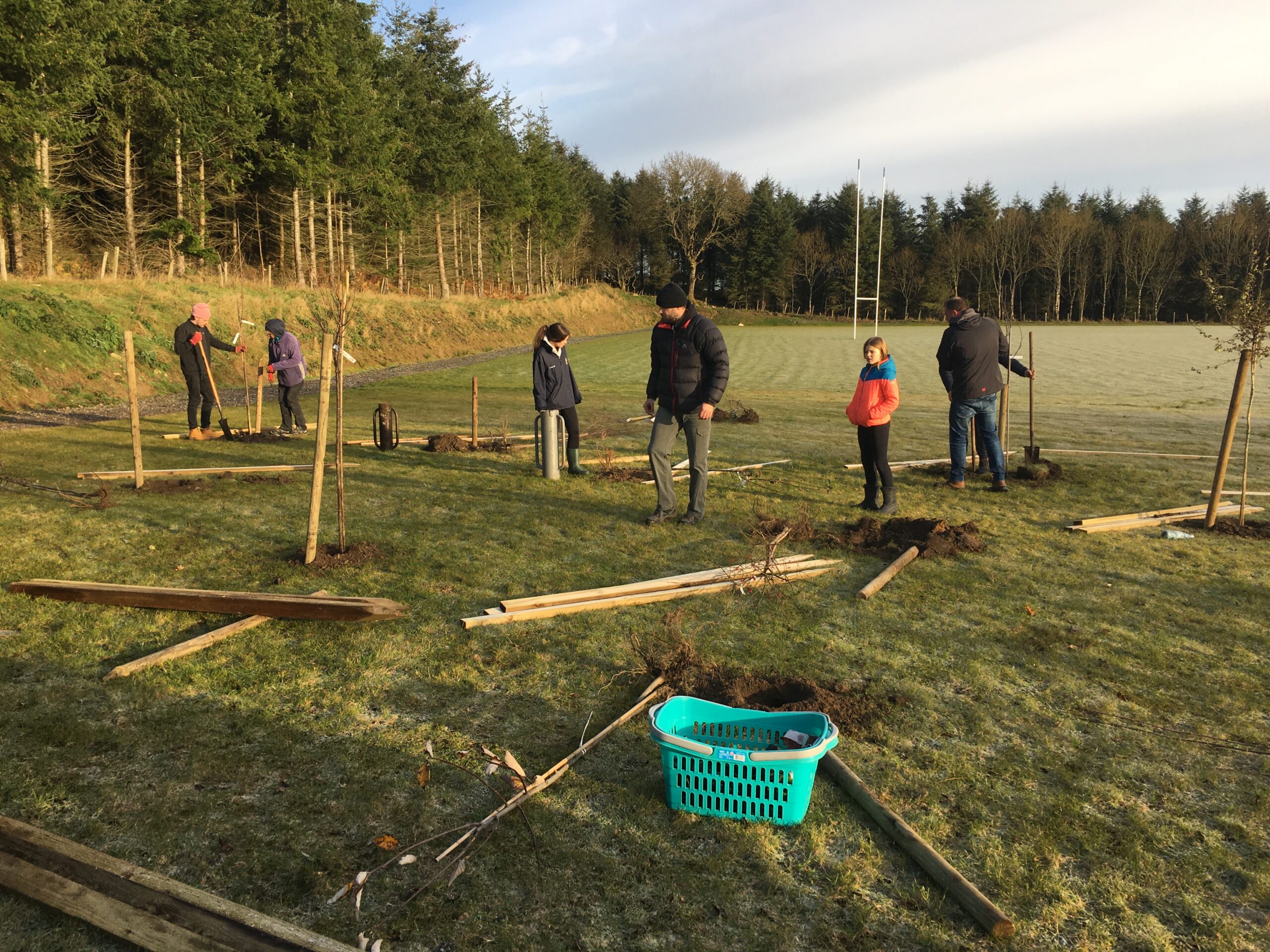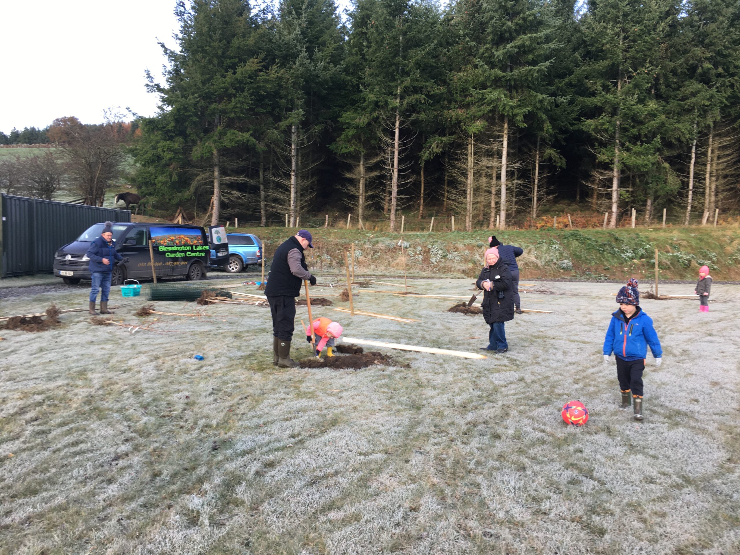 As you may be aware the Club received a 500 euro grant to plant trees from Wicklow County Council, which was great.  And so, we engaged Catriona Taylor at Blessington Lakes Garden Centre who acted not only as tree supplier but a consultant who also managed to bring along the crew from Bugs, Bees & (Native) Trees, thank you to Dr David Mulcahy.