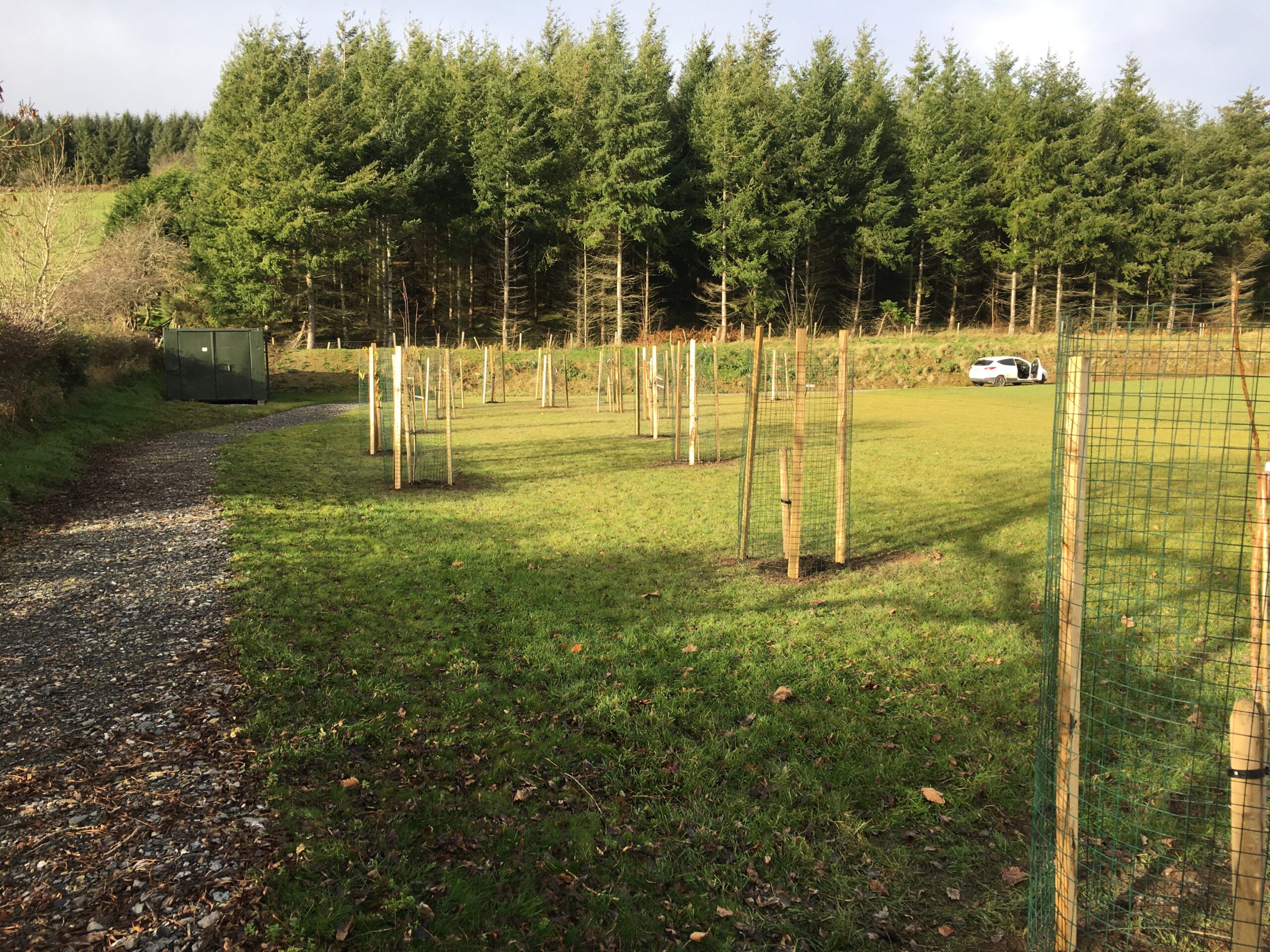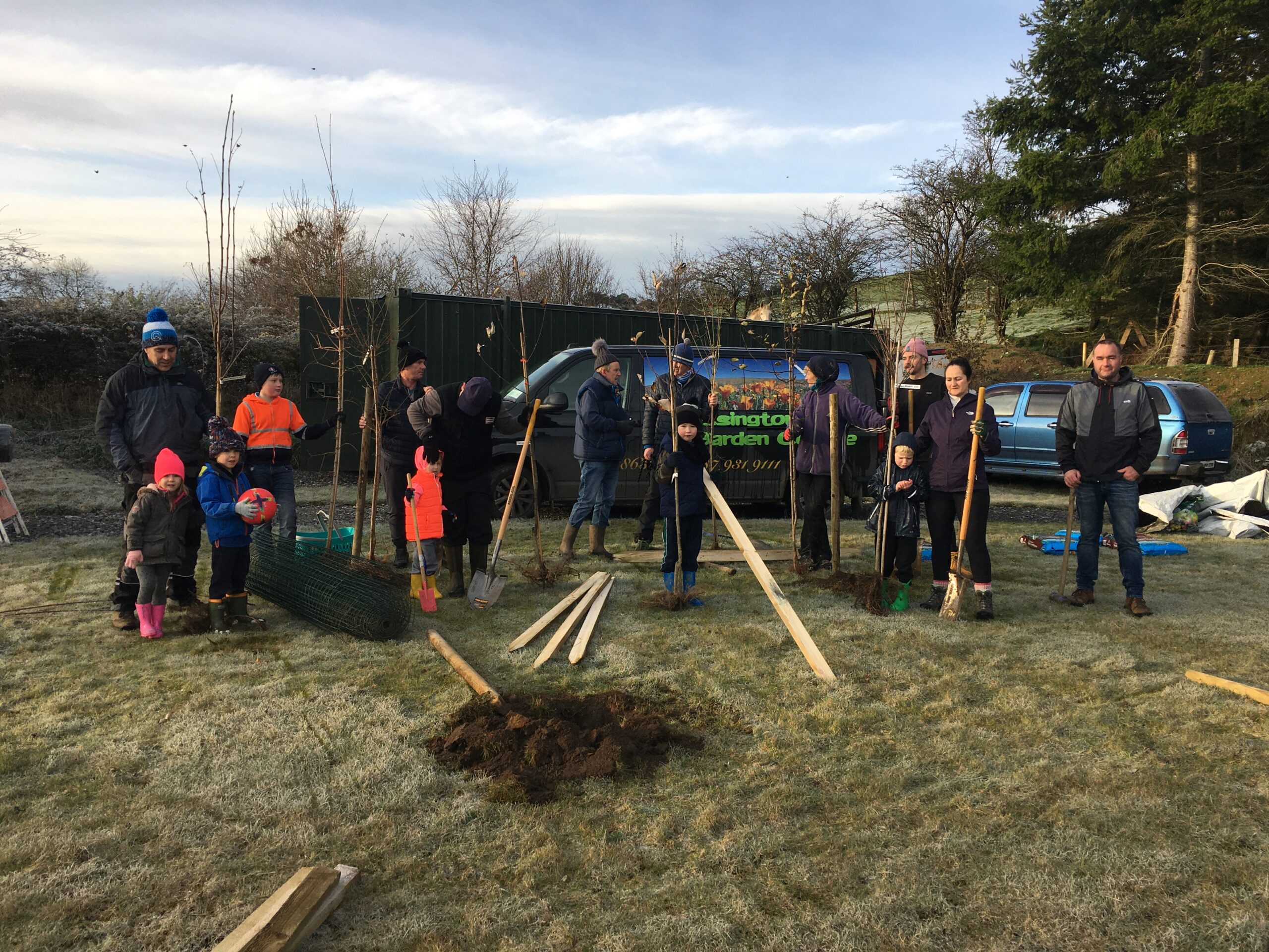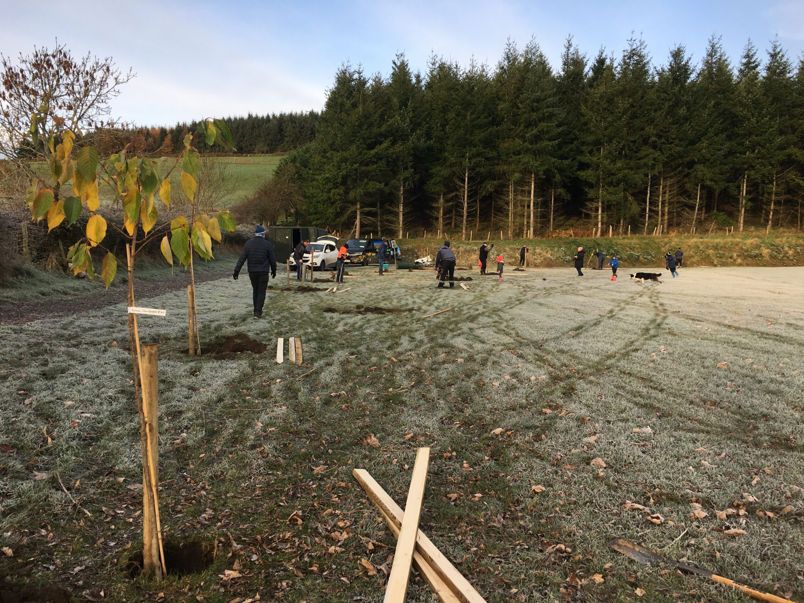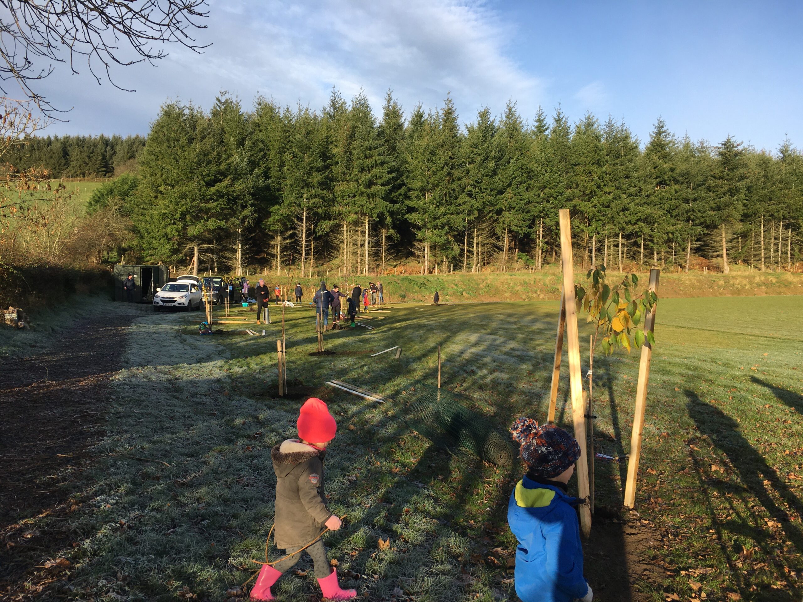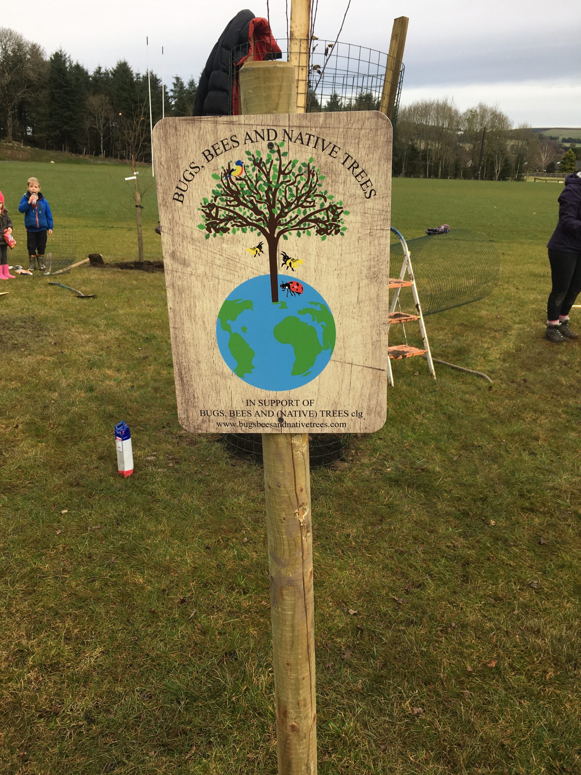 As you may be aware the Club received a 500 euro grant to plant trees from Wicklow County Council, which was great.  And so, we engaged Catriona Taylor at Blessington Lakes Garden Centre who acted not only as tree supplier but a consultant who also managed to bring along the crew from Bugs, Bees & (Native) Trees, thank you to Dr David Mulcahy.