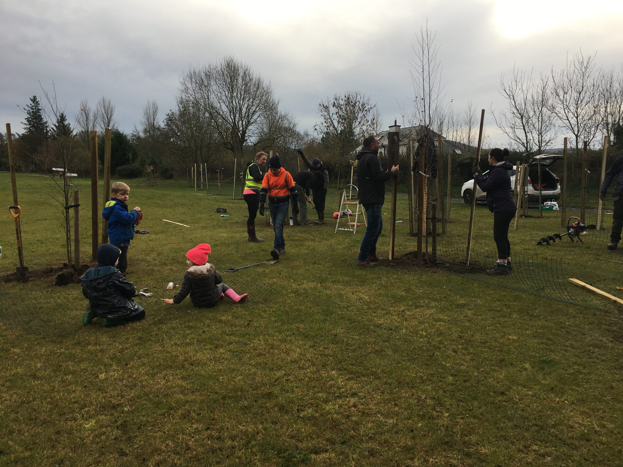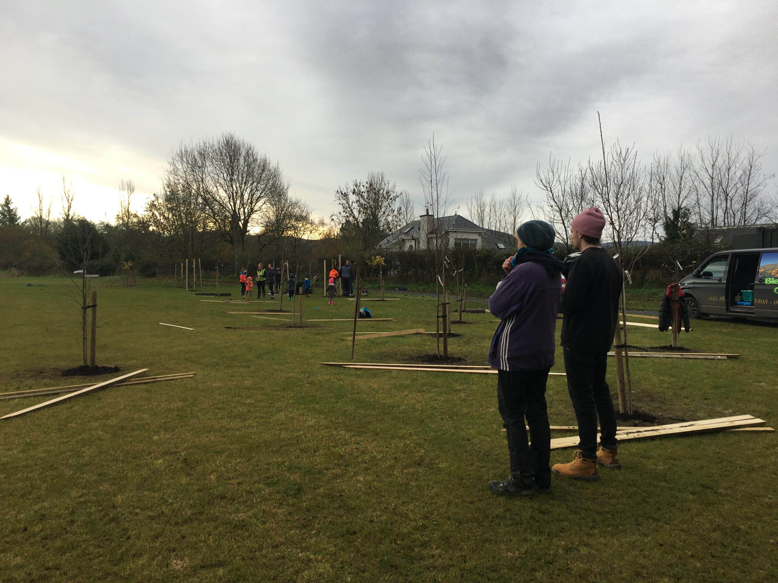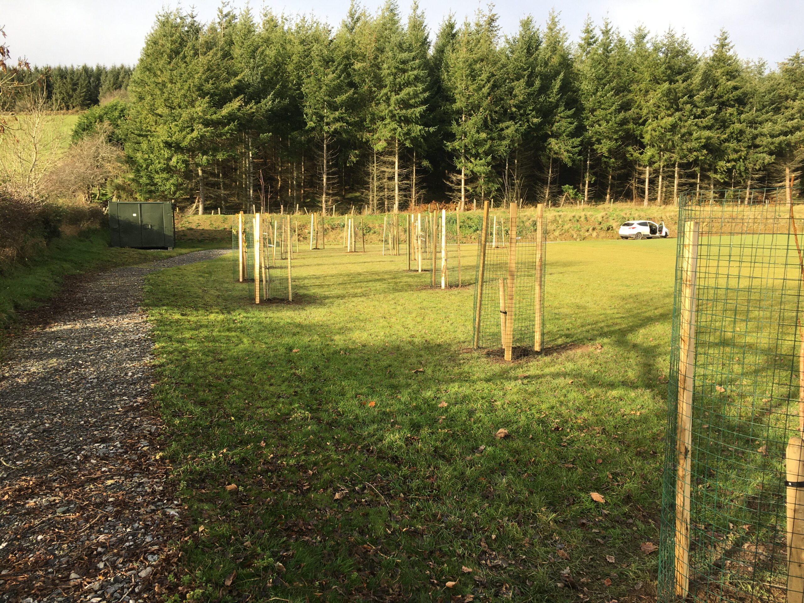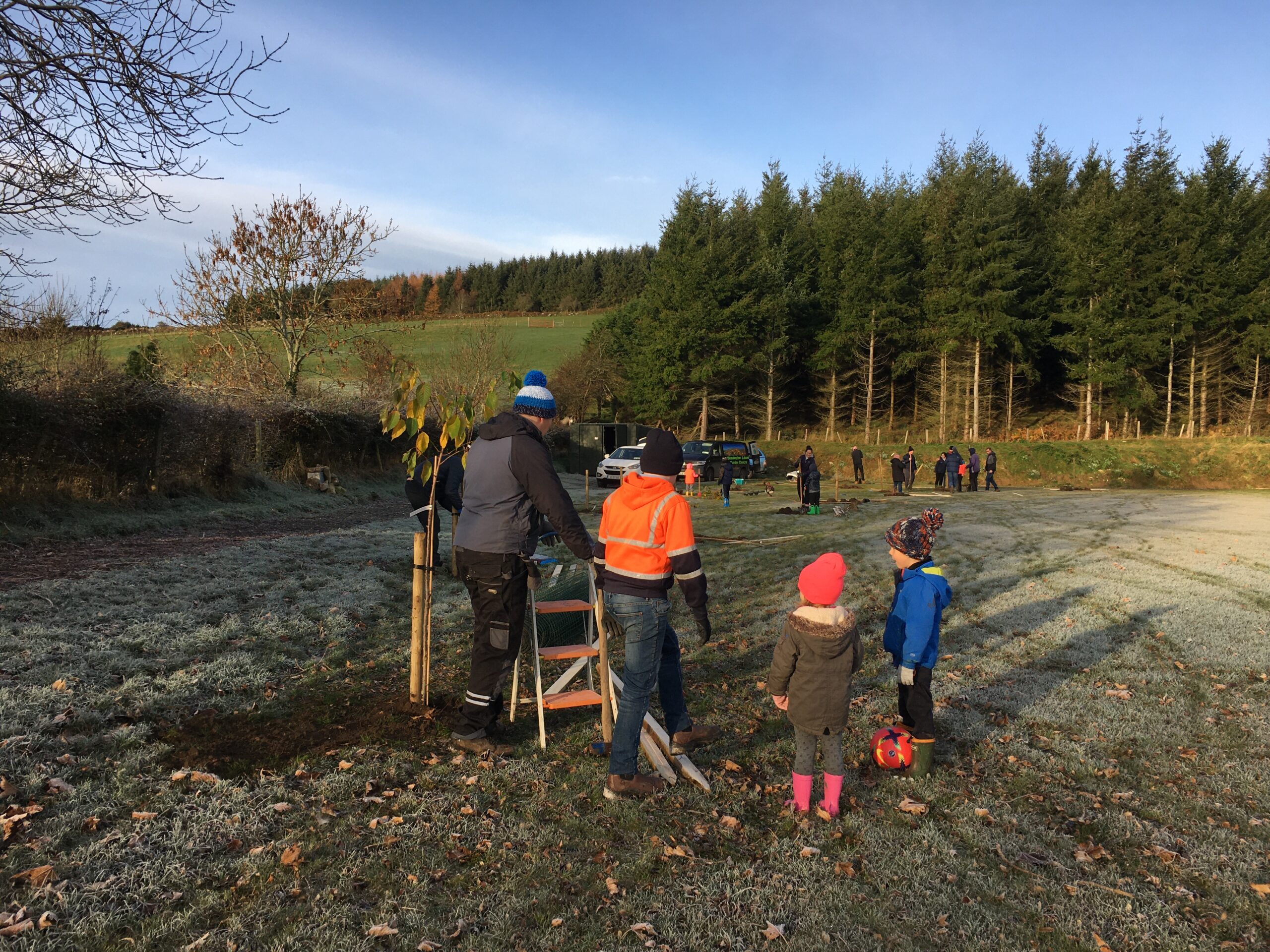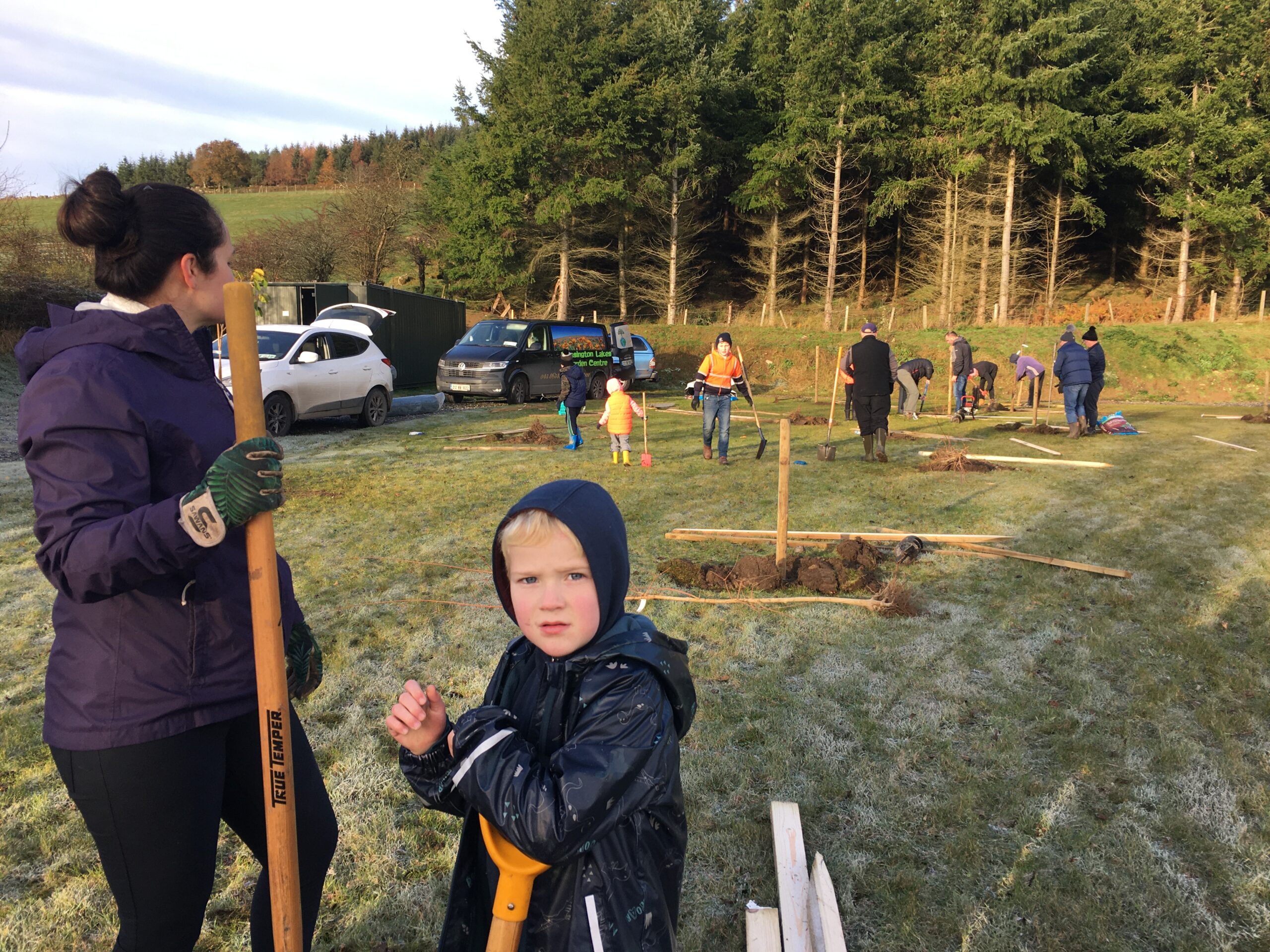 As you may be aware the Club received a 500 euro grant to plant trees from Wicklow County Council, which was great.  And so, we engaged Catriona Taylor at Blessington Lakes Garden Centre who acted not only as tree supplier but a consultant who also managed to bring along the crew from Bugs, Bees & (Native) Trees, thank you to Dr David Mulcahy.
