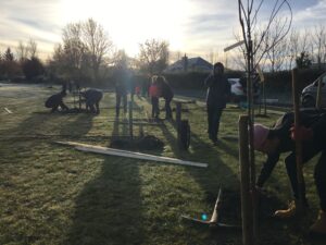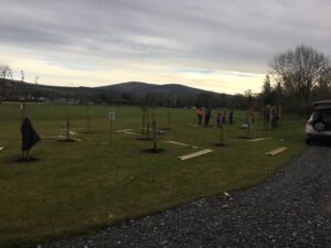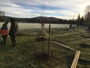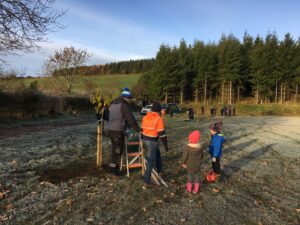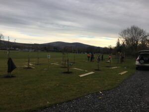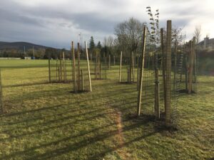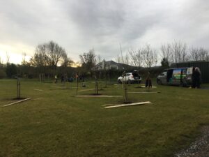 As you may be aware the Club received a 500 euro grant to plant trees from Wicklow County Council, which was great. And so, we engaged Catriona Taylor at Blessington Lakes Garden Centre who acted not only as tree supplier but a consultant who also managed to bring along the crew from Bugs, Bees & (Native) Trees, thank you to Dr David Mulcahy.