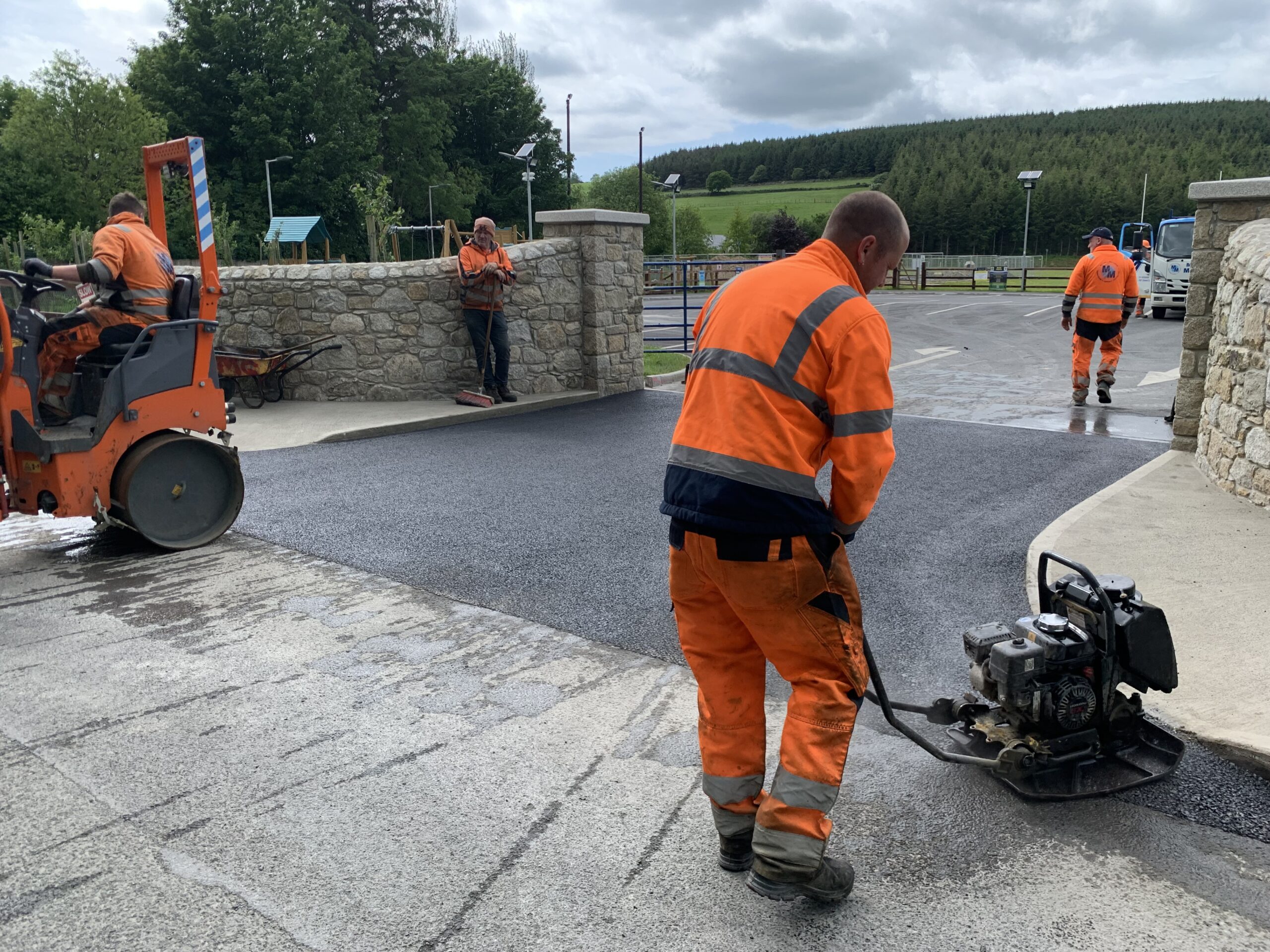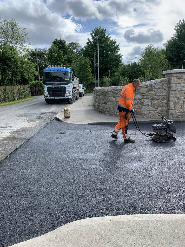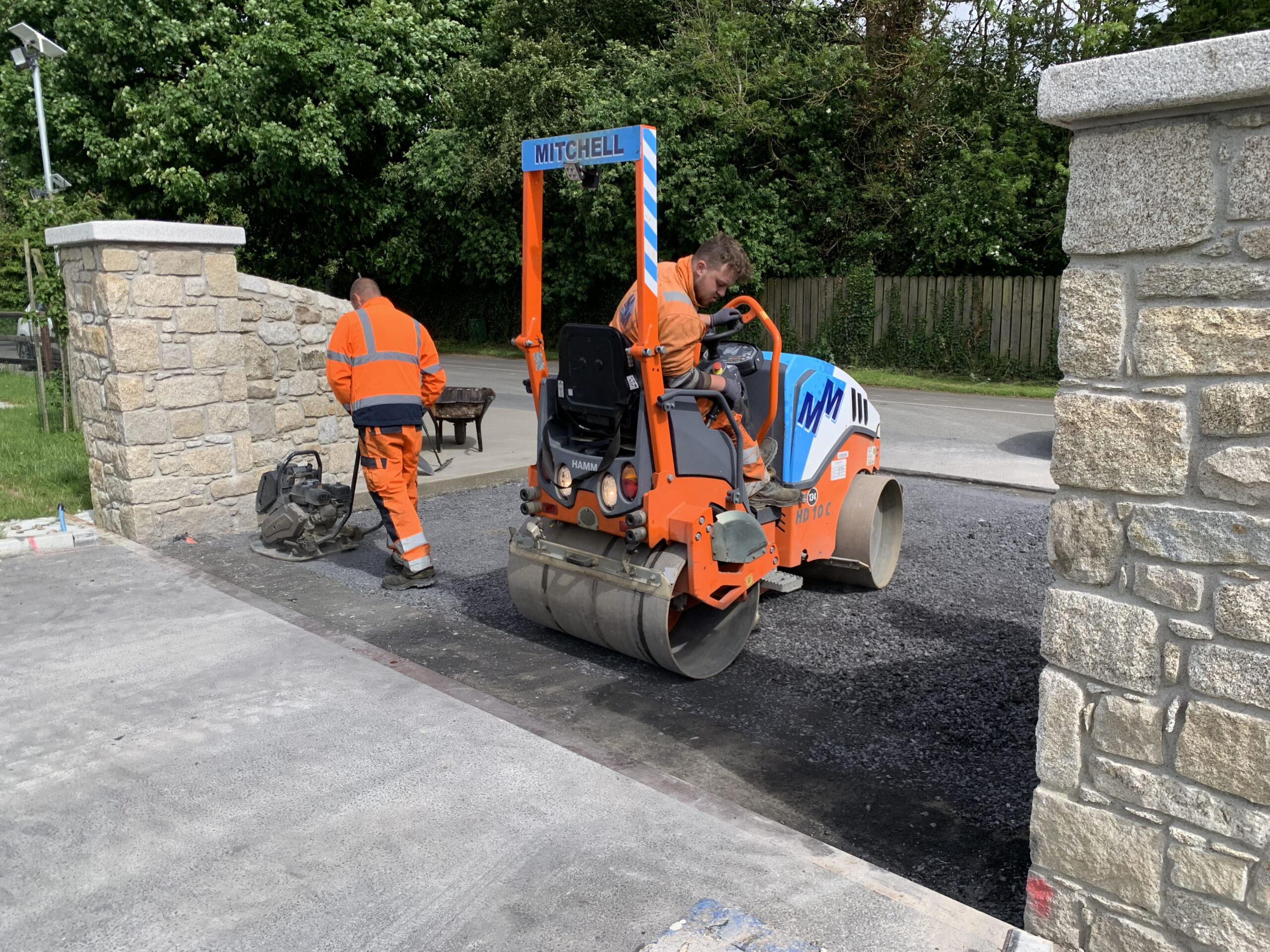 And as day follows night…the ever professional Mitchell Macadam LTD – Tarmacadam Contractors are onsite to complete the entrance. What a job. Awesome!