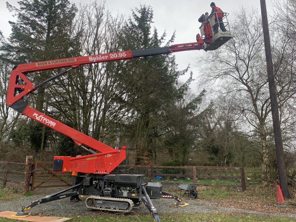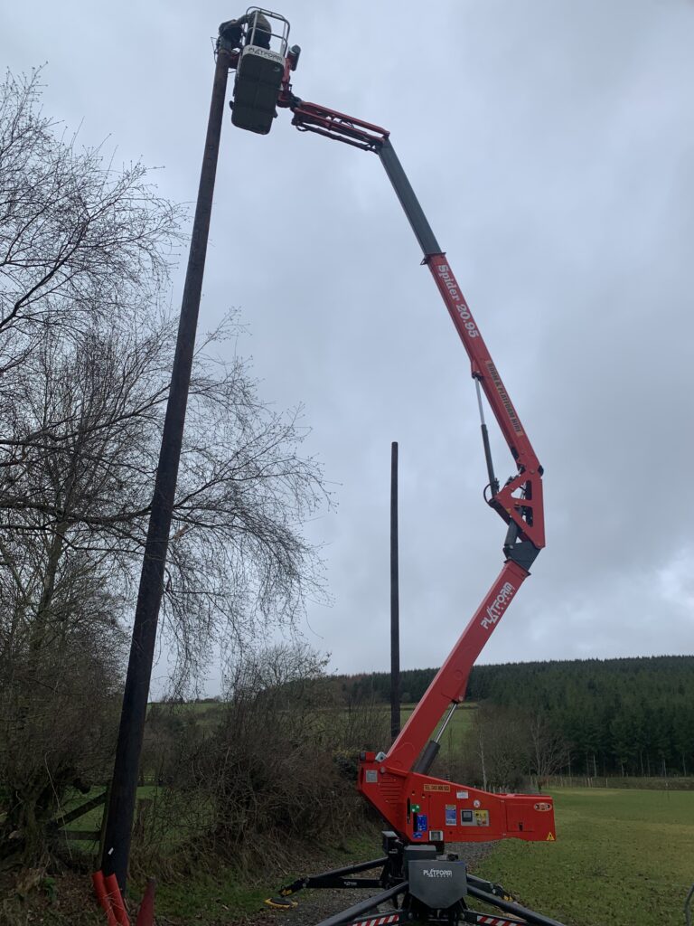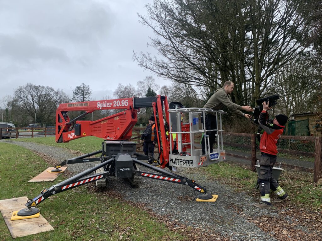 Massive shout out to Fergal Donoghue of Boom & Platform Ltd. who donated the use of his Spider Lift, a specialist Platform Basket which managed to stay on the walking track throughout the project, which was brilliant (no pitch damage).