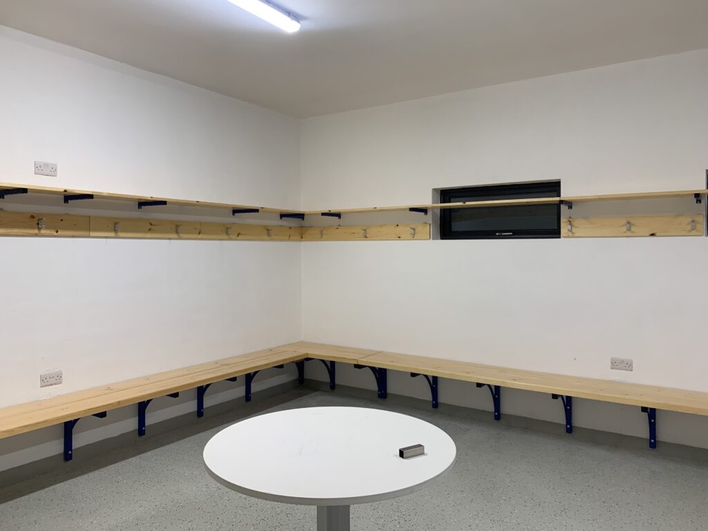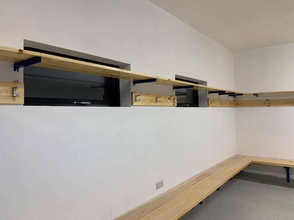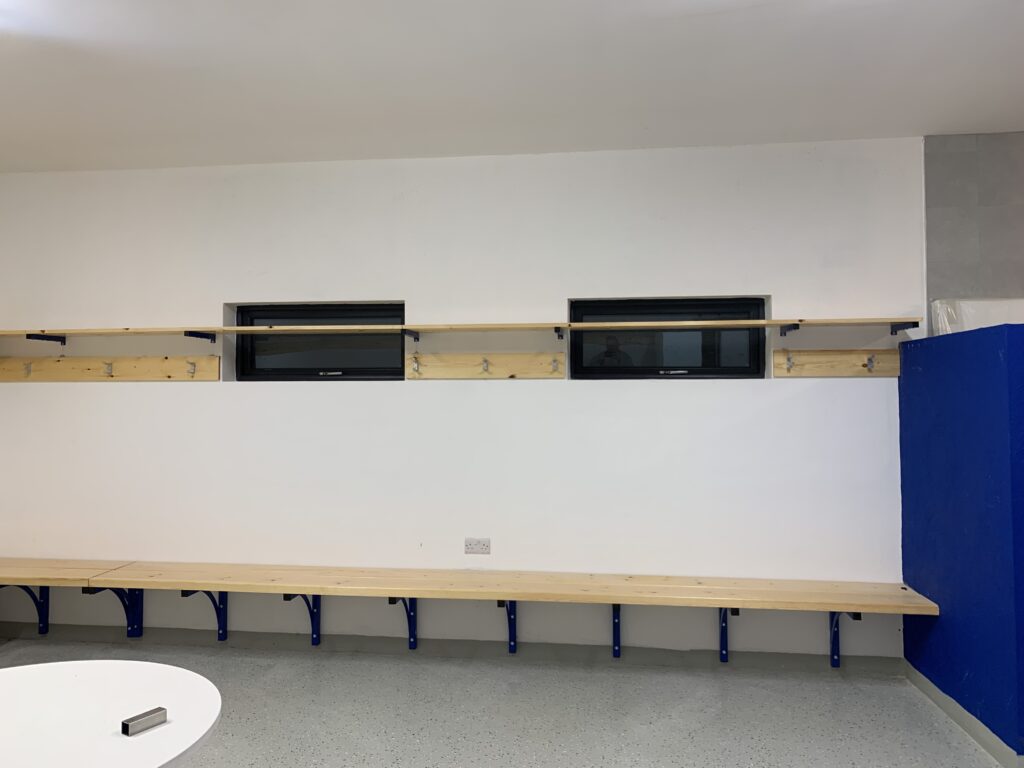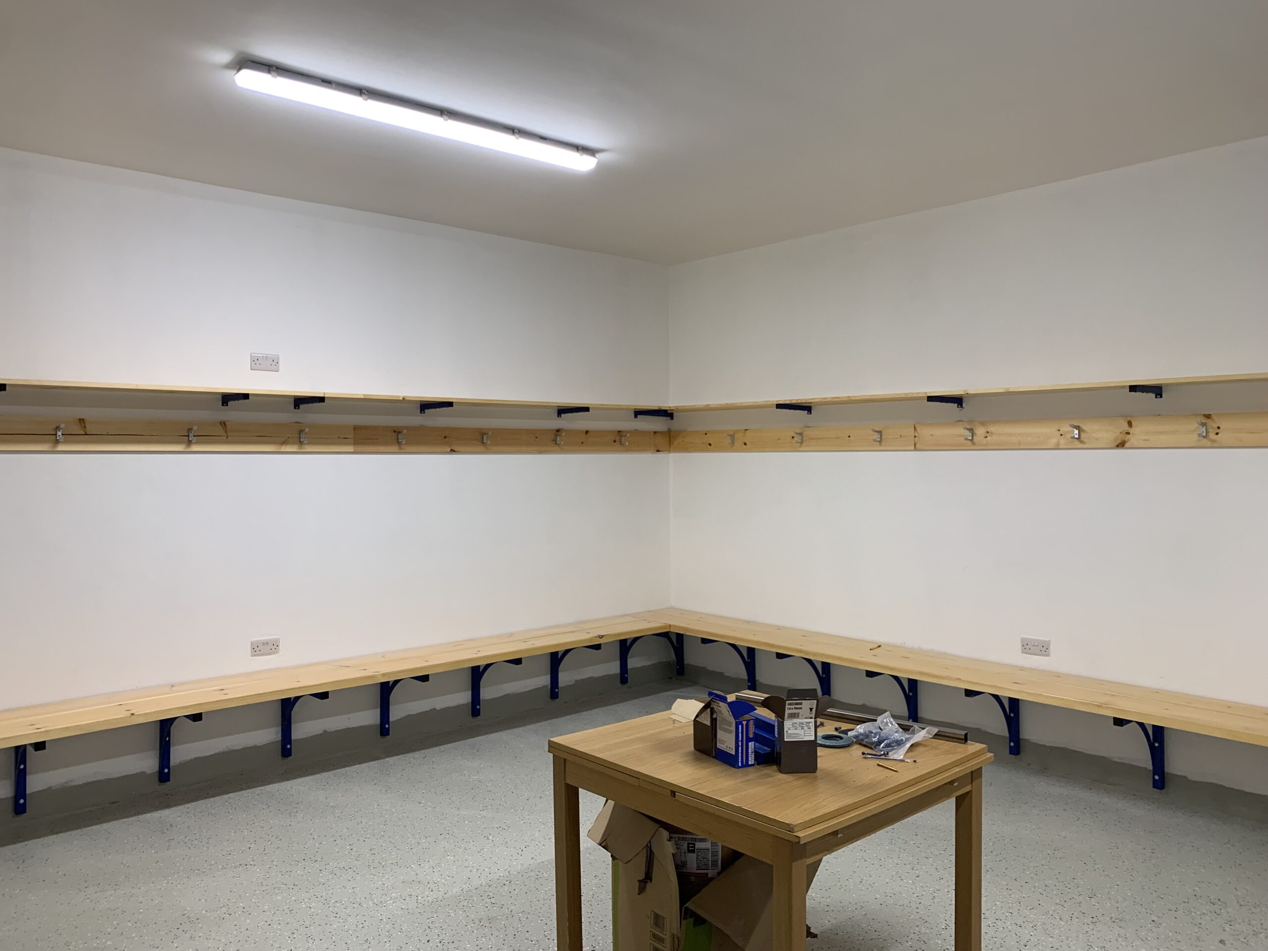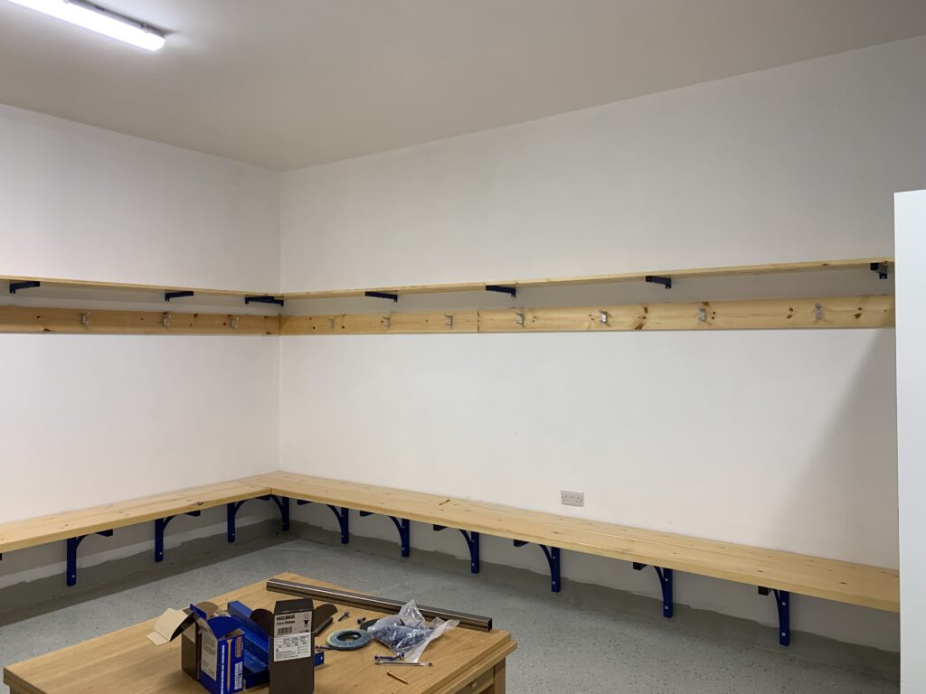 Thanks to Conor Hendrick, Justin Cummins and John & Brenda Jones, the shelving in the Dressing Rooms are now up, looks great. Well done.