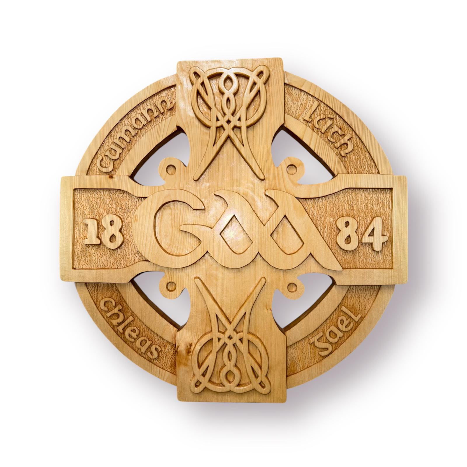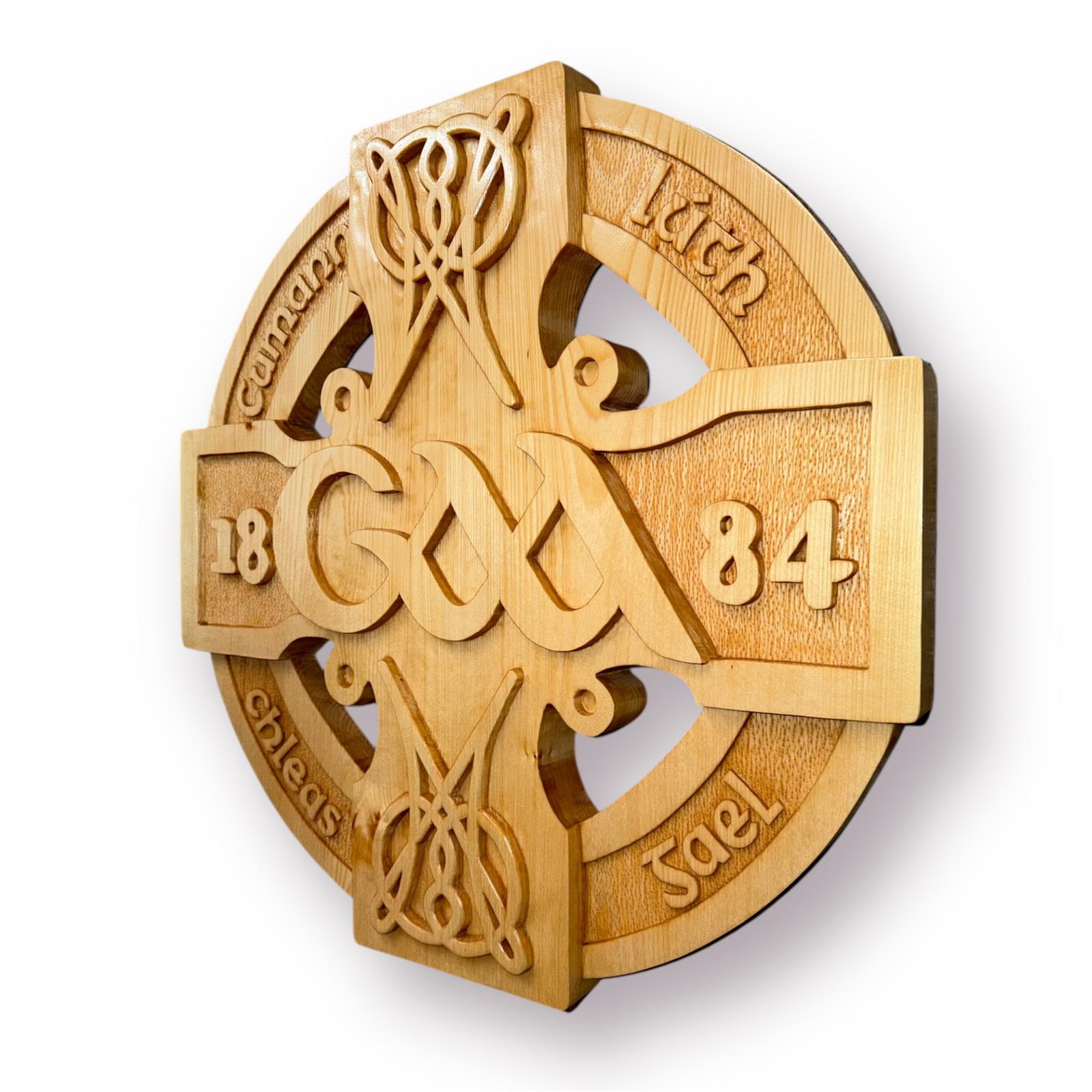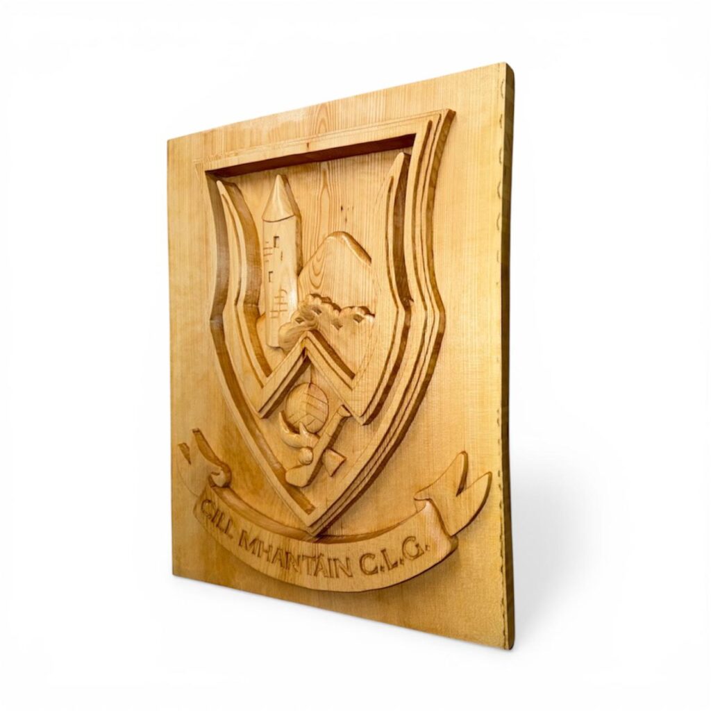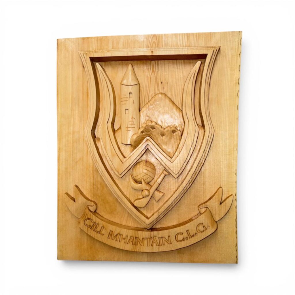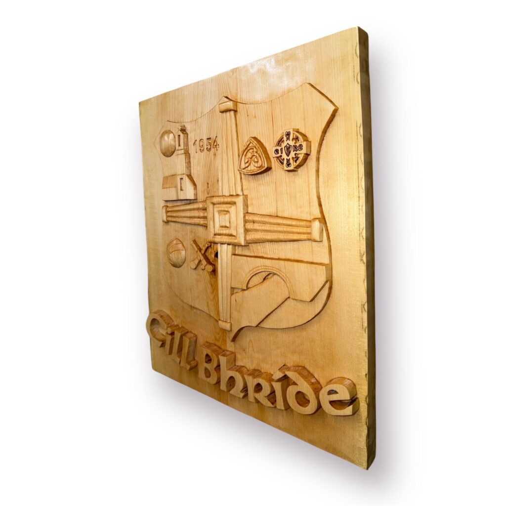 The Club commissioned Kim at Woodpecker Carving in Ashbourne County Meath to design a Club Crest, Wicklow and the Celtic Cross in carved wood…all for the big day next month and into the future…