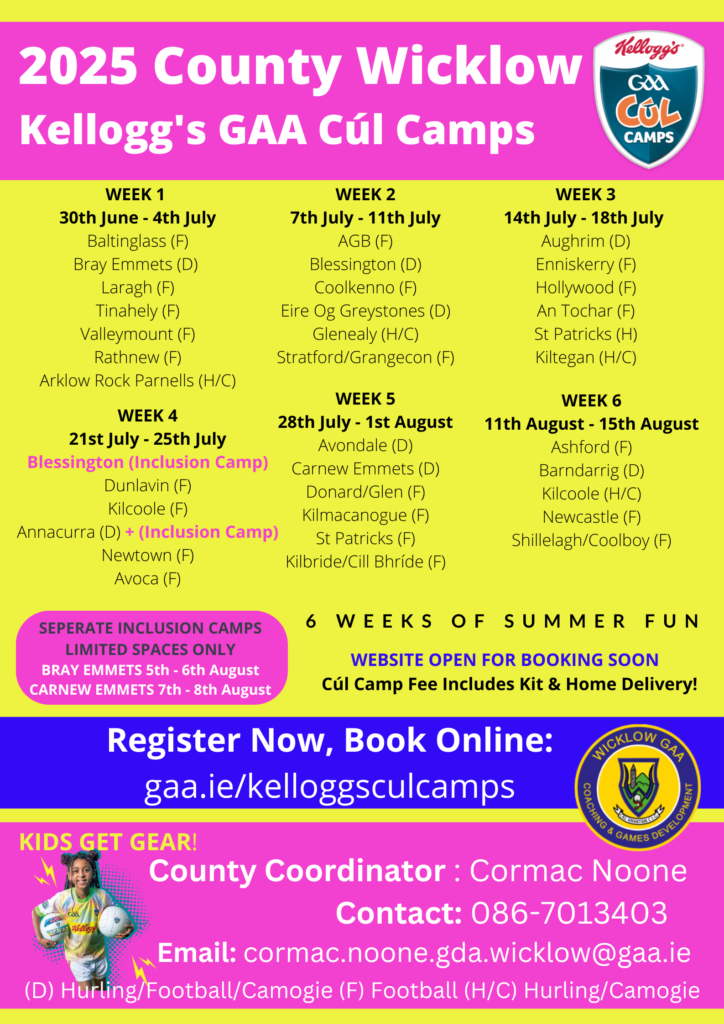 Cul Camps 2025 – Kilbride…Dates Confirmed – July 28th to the 1st August…bookings open