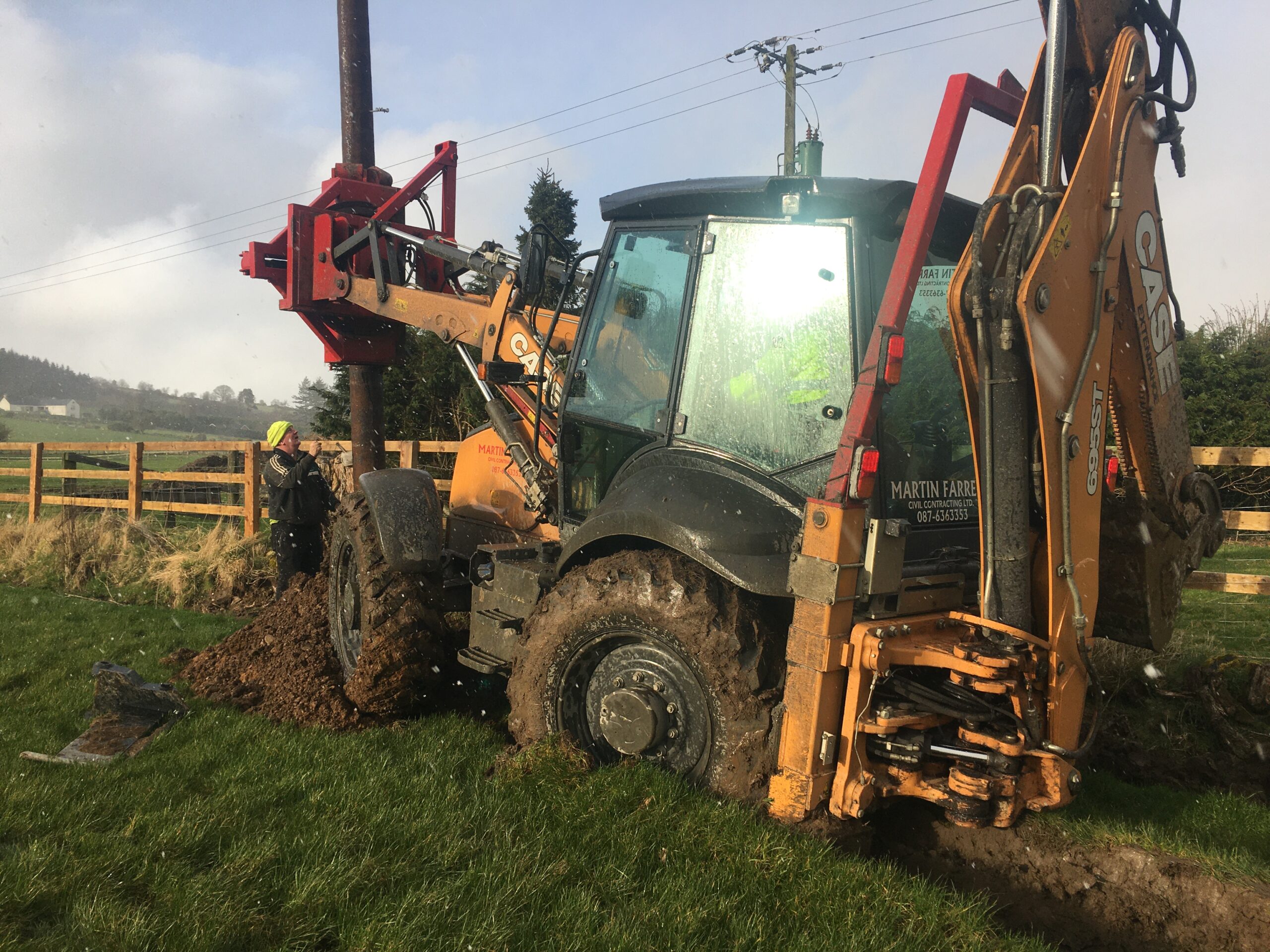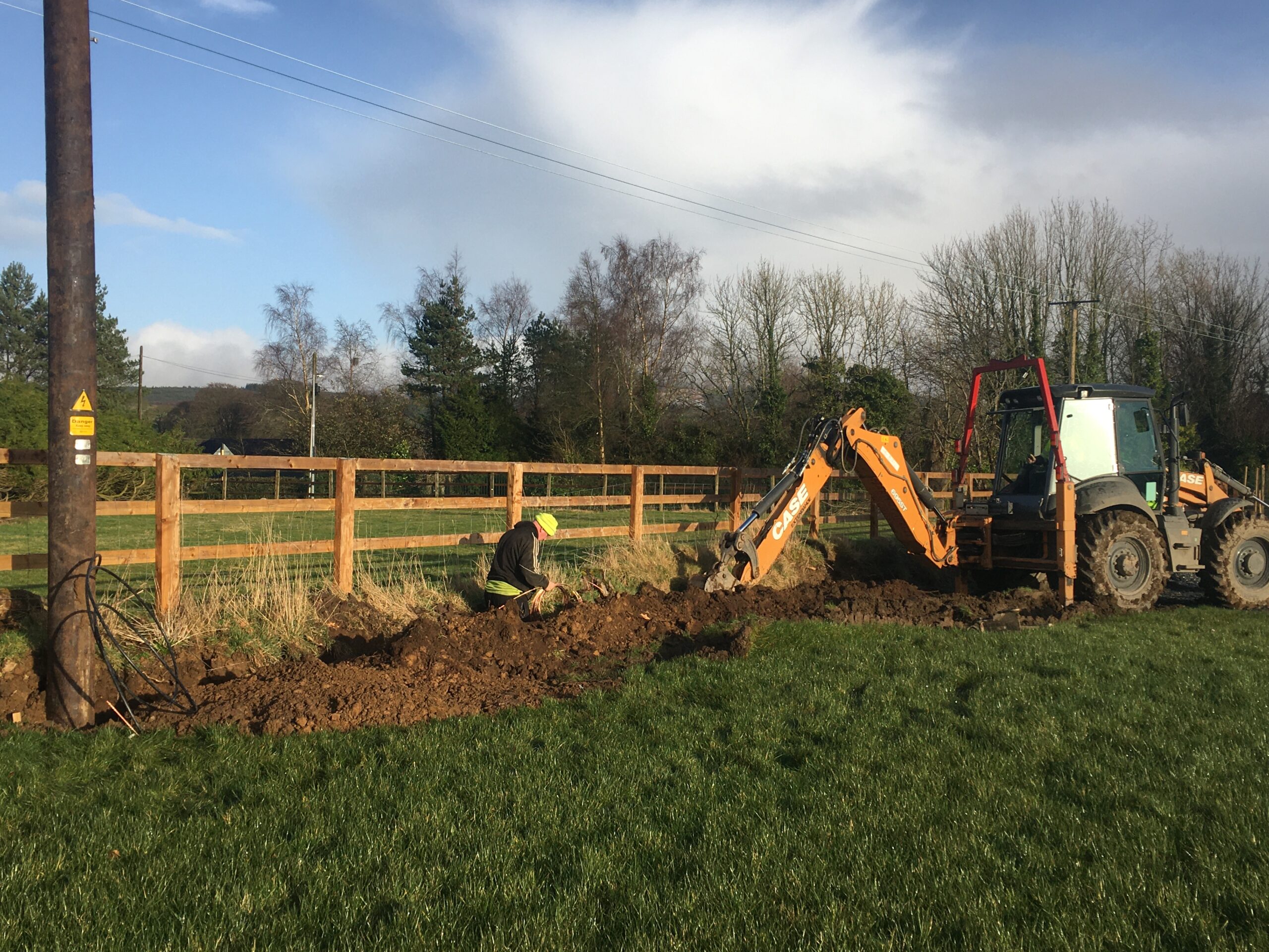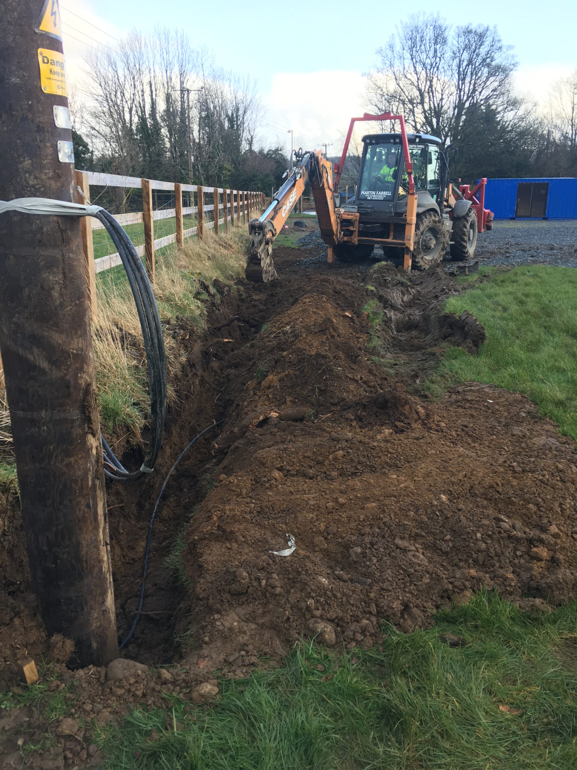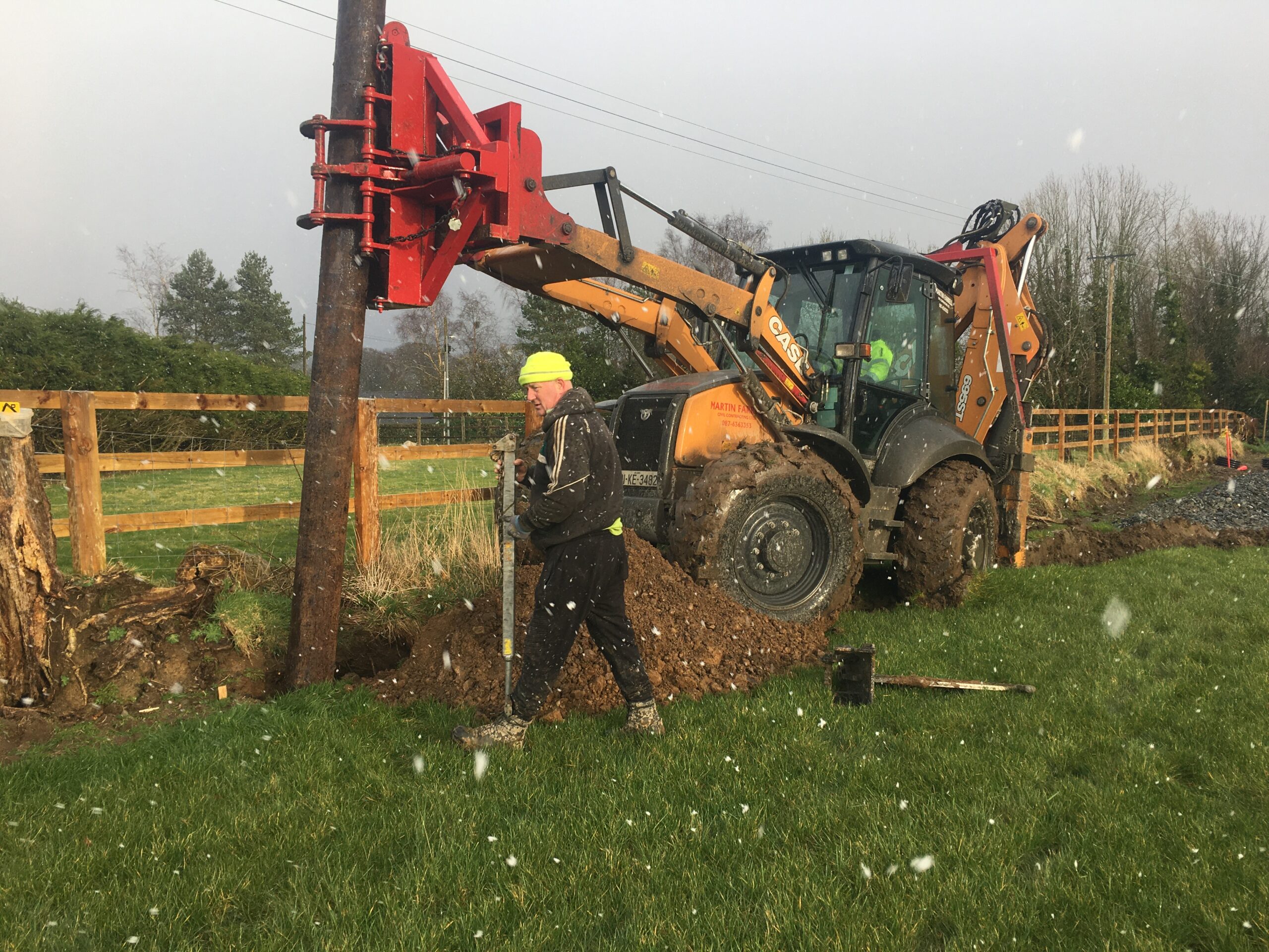 And the ESB Pole has been grounded…photos below…power should be in by May when the walking track, car park fencing (with two pedestrian gates) and final touches on the boundary of the site are completed…exciting times ahead. FYI, the two units (coffee/tea unit and dressing rooms) on site at the moment will move to the right hand side of the car park once the car park is completed in May.