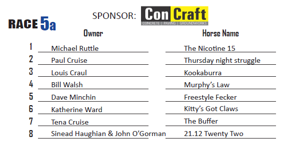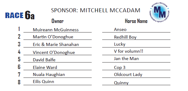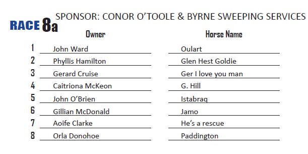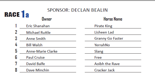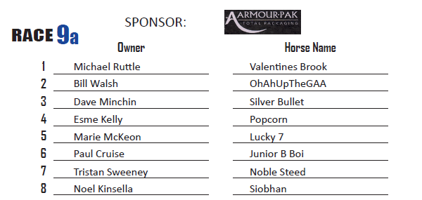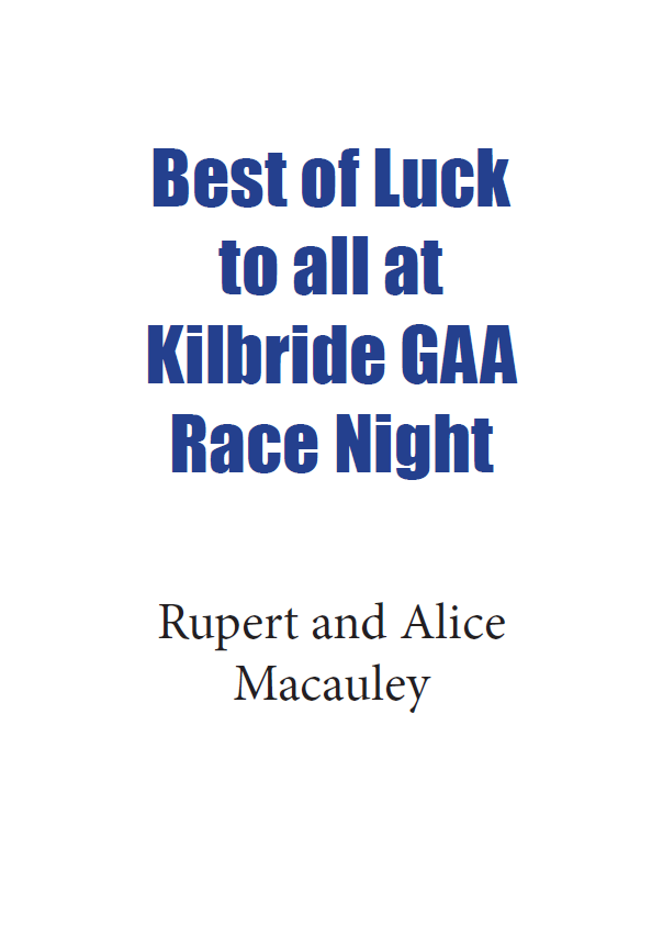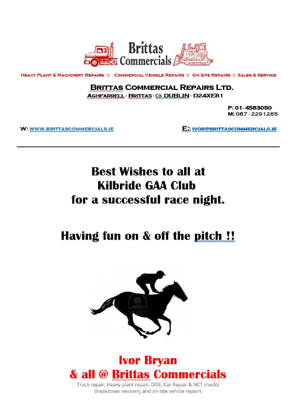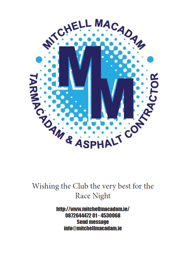 So, first up is Paddy and John Kelly of Pumplant Ltd who missed out on an advertisment in the Race Night booklet, but made a significant four figure donation to the Playground project and also bought a horse in the Auction Race. Great support.