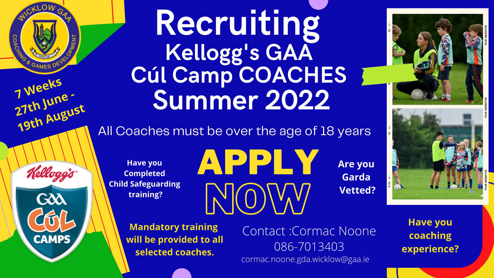 After a three year absence…Cul Camps (6 year old to 13 year olds boys and girls) are returning to Kilbride in August from the 15th to the 19th (10AM till 2PM) – there are only 9 places left. See registration link here: https://www.kilbridegaa.com/news/cul-camps-are-returning-to-kilbride-in-august-from-the-15th-to-the-19th-who-wants-to-coach-at-cul-camps/