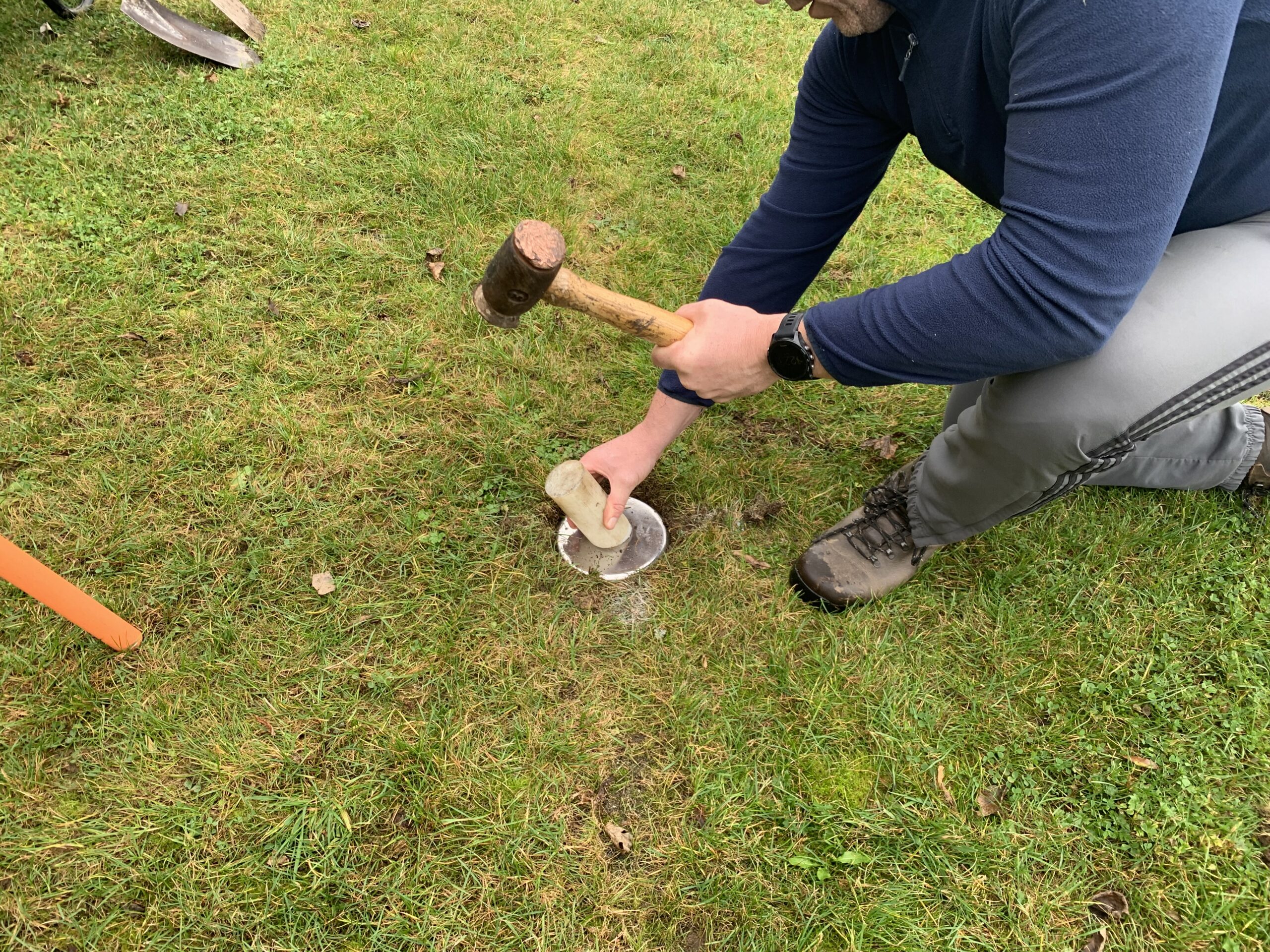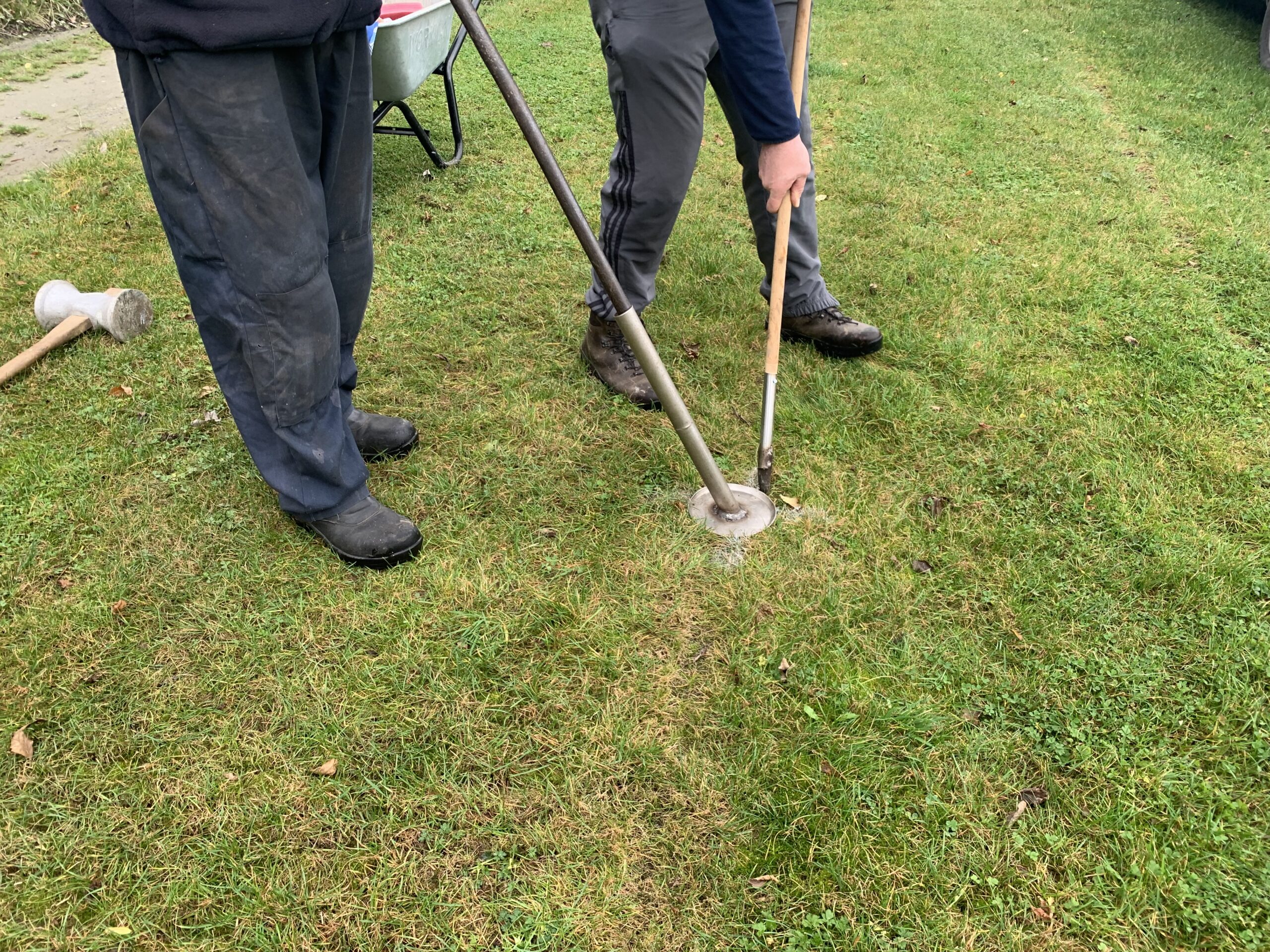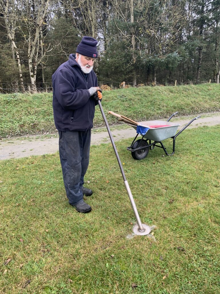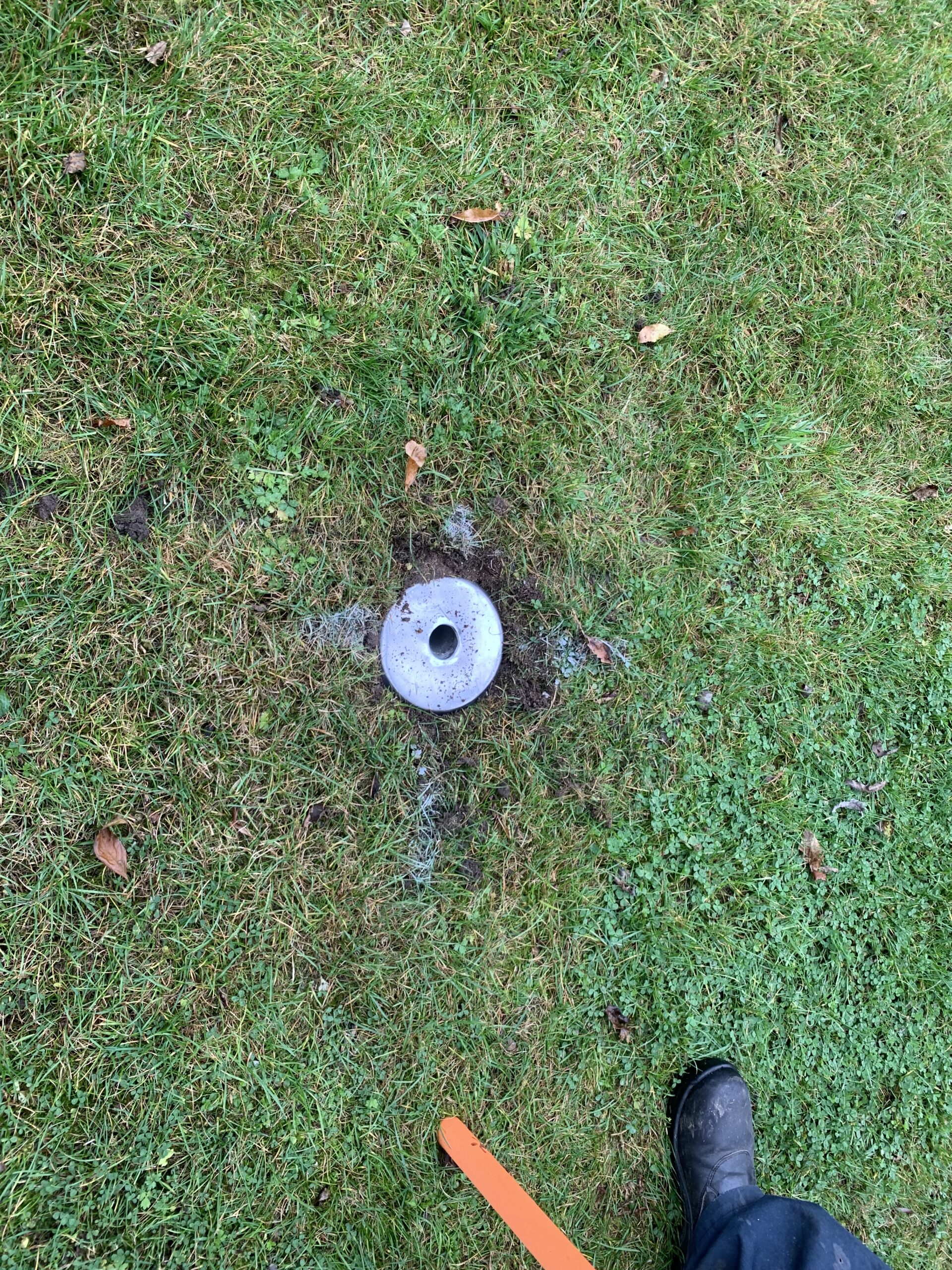 And on Saturday, Eddie Balfe put his talents to work, planting his custom made aluminium flag holders on each corner, 13, 20 and 45 and 65. They are at an angle for safety (flags are supposed to be at an angle in case a player falls on a flag, flags should not be a a 90 degrees) and positioned on the line. Thanks also to David Balfe for helping out. See photos.