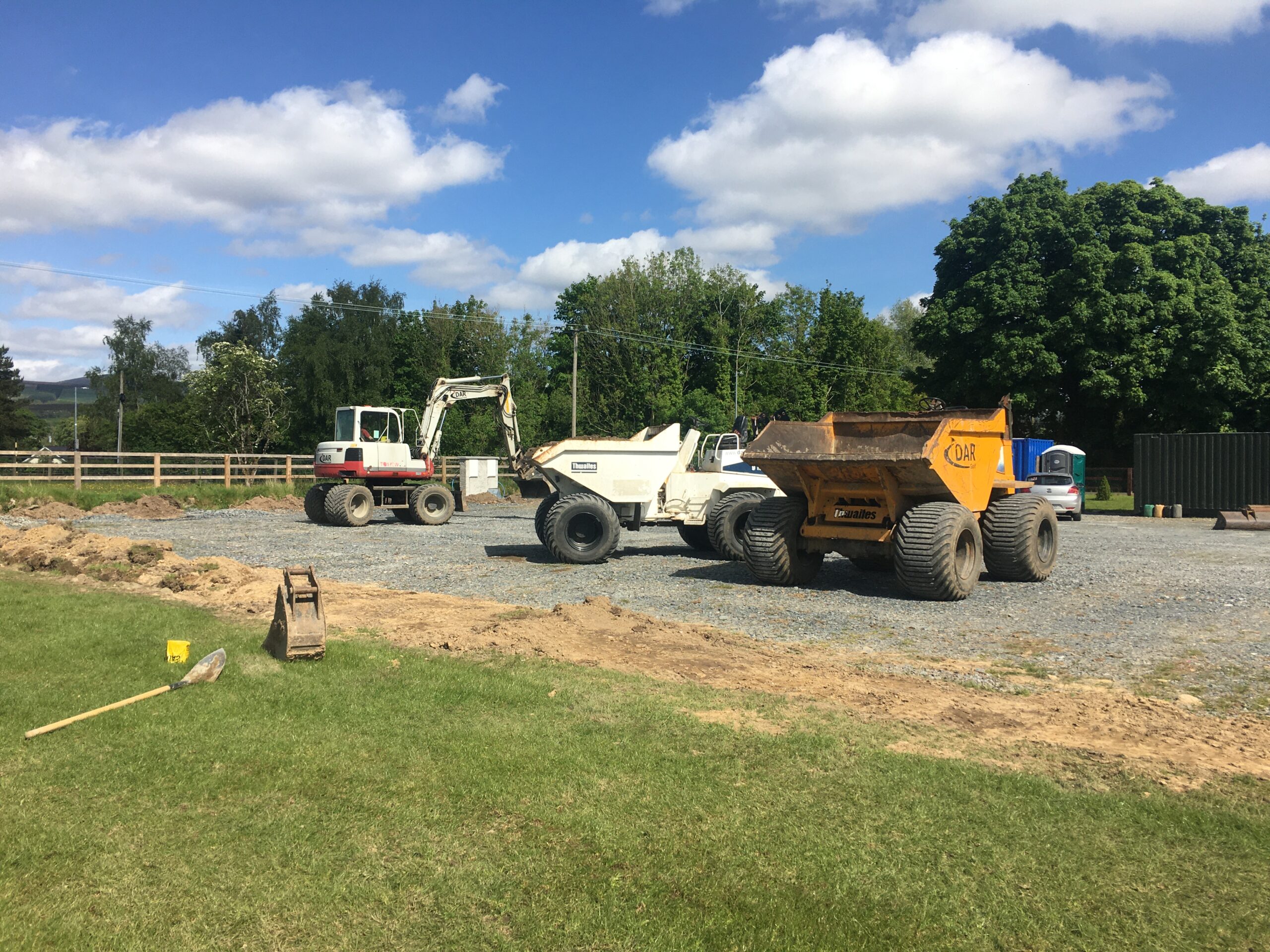 Walking Track Starts, Car Park Finished, Electricity Ducting Down for Lighting and Water Supply moved to the right hand side for the temporary Dressing Rooms and Coffee/Tea Unit