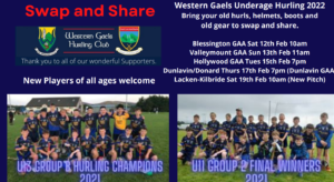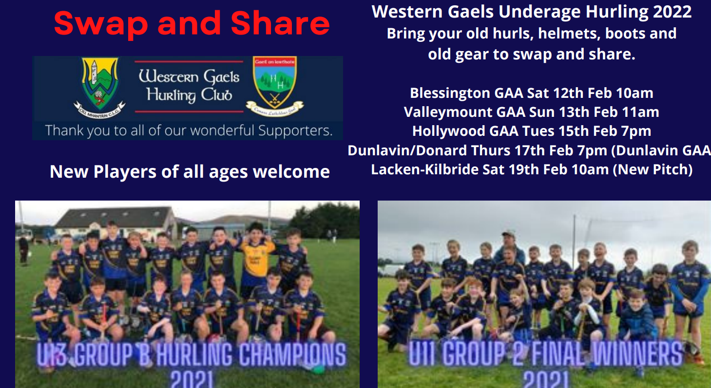Western Gaels are holding a Swap and Share event in Kilbride this Saturday (19th of Feb) at 10AM in the new pitch.